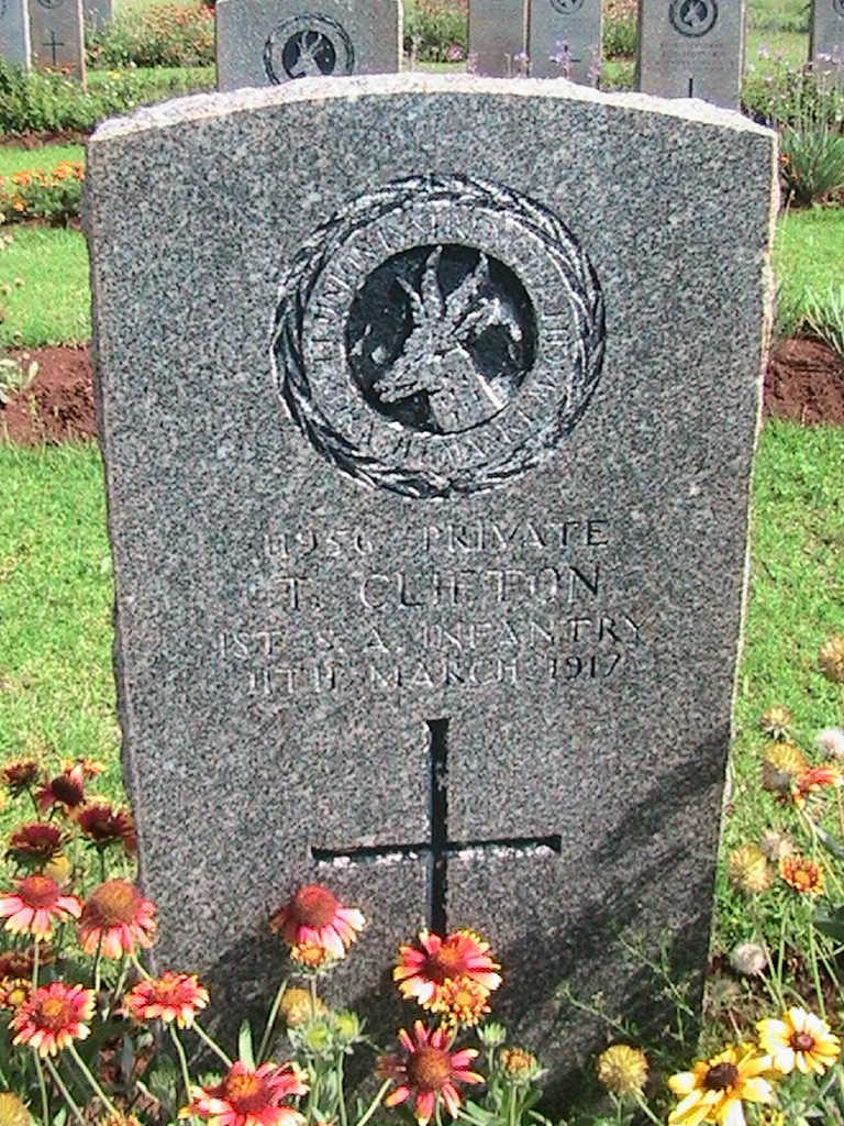 Son of Benjamin and Emily Clifton, of 36 Betty Street, Jeppes, Johannesburg. Born Blyth, Northumberland, England. A fireman South African Railways