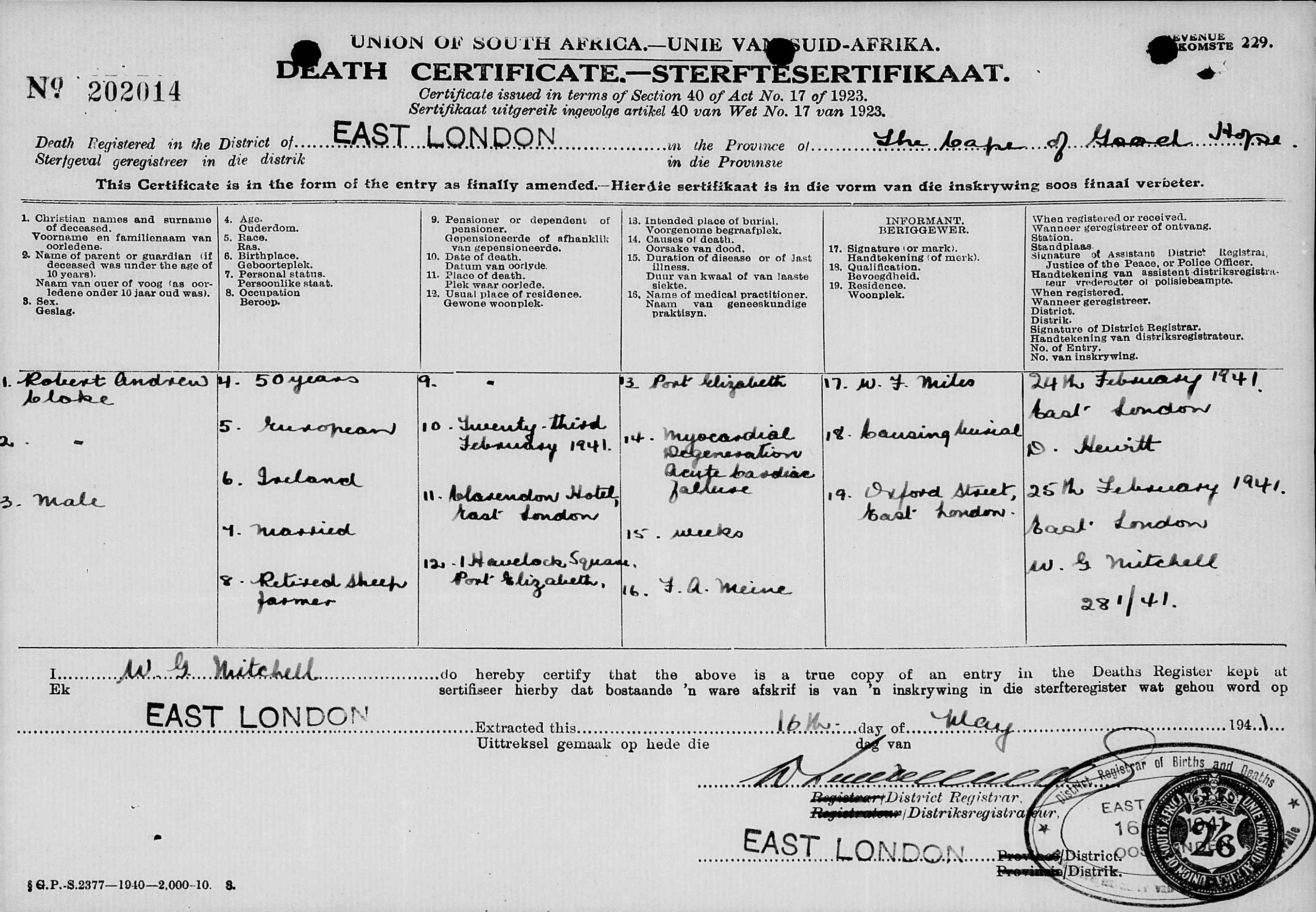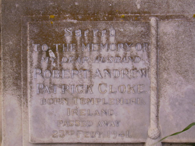 Husband of Dorothy Clarke, of Port Elizabeth. Born Templemore, Ireland