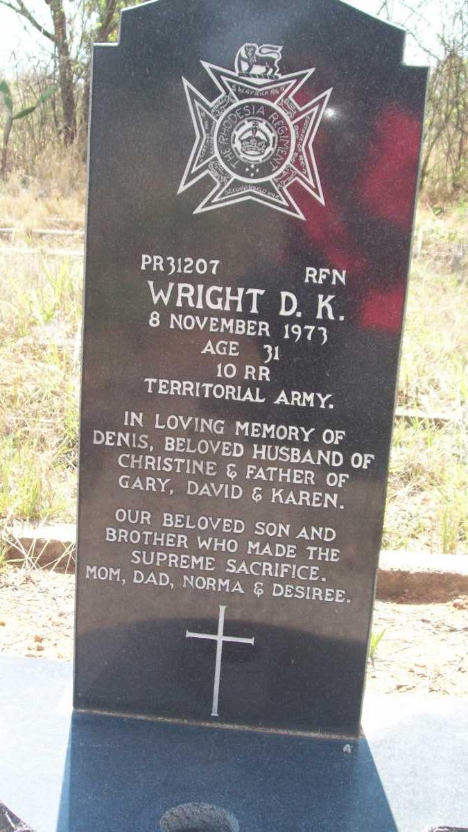 Of 27 Temeraire Mine, Mashaba. Born Rhodesia. ref. "Rhodesian Roll of Honour" by P. Geldenhuys (Roll compiled by Dr. J. R. T. Wood). Amendments from "Rhodesian Combined Forces Roll of Honour 1966-1981", by Adrian Haggett and Gerry van Tonder. |