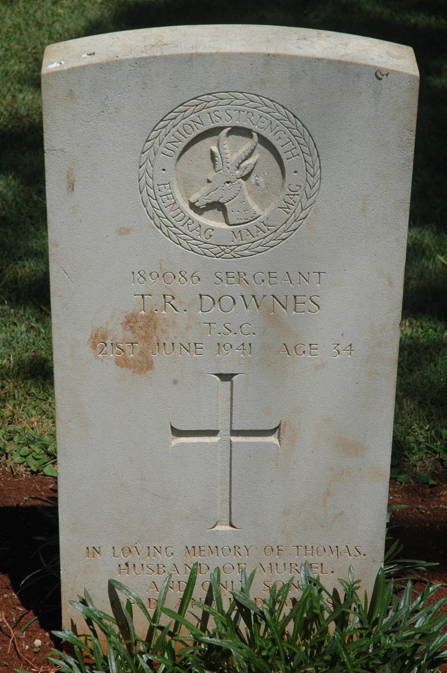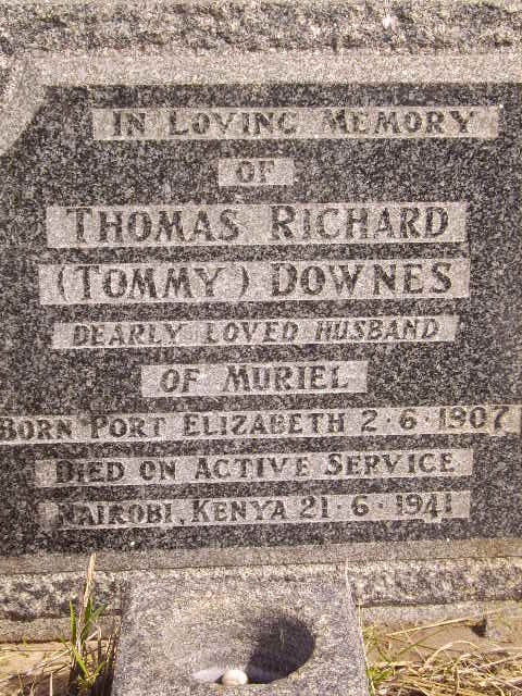 Son of Richard and Dora Downes, of Port Elizabeth, Cape Province, South Africa; husband of Kate Muriel Downes, of Port Elizabeth. Commemoration stone in Port Elizabeth (South End) Cemetery