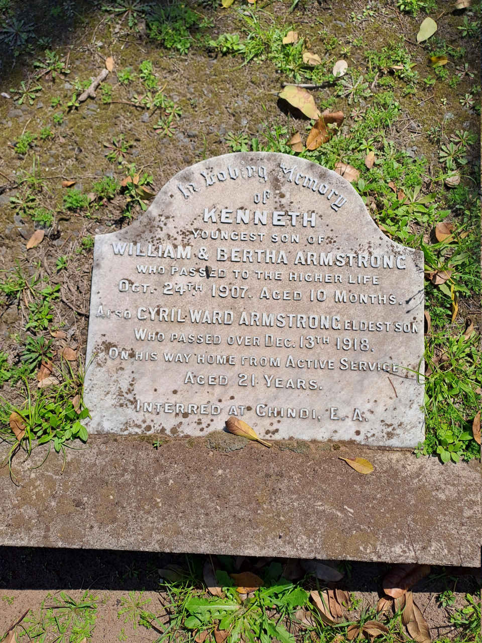 Son of William and Anna Bertha Armstrong, of Durban. Born Bootle, Liverpool, England. A wool buyer. Commemoration stone in Durban (West Street) Cemetery