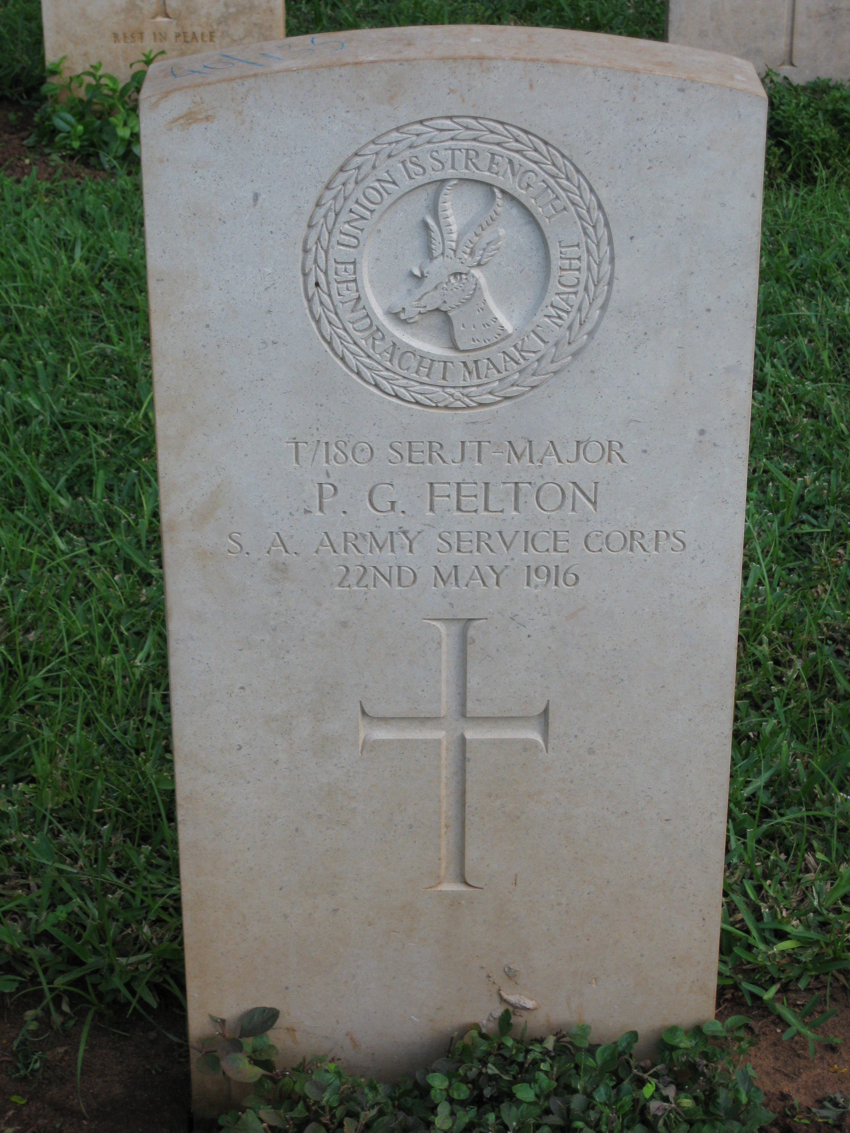 Son of Robert and Annie Lillian Felton. Husband of Gezina Wilhelmina Felton, of 3 Hemming Street, Kimberley. Born Kimberley. An assurance agent