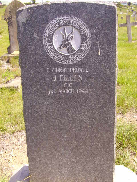 Husband of Mrs. M. Fillies, of Montage Street, Hopetown, Mossel Bay. Father of Mr. Harold Fillies, of 149 New Hopetown, Mossel Bay. Discharged as Medically Unfit on 10 November 1943