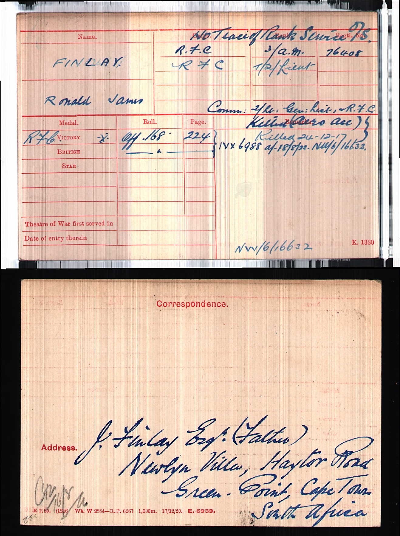 Son of Mr. and Mrs. James Finlay, of Newlyn Villa, Haytor Rd., Green Point, South Africa. Born Pavilion, Melrose, Roxburghshire.