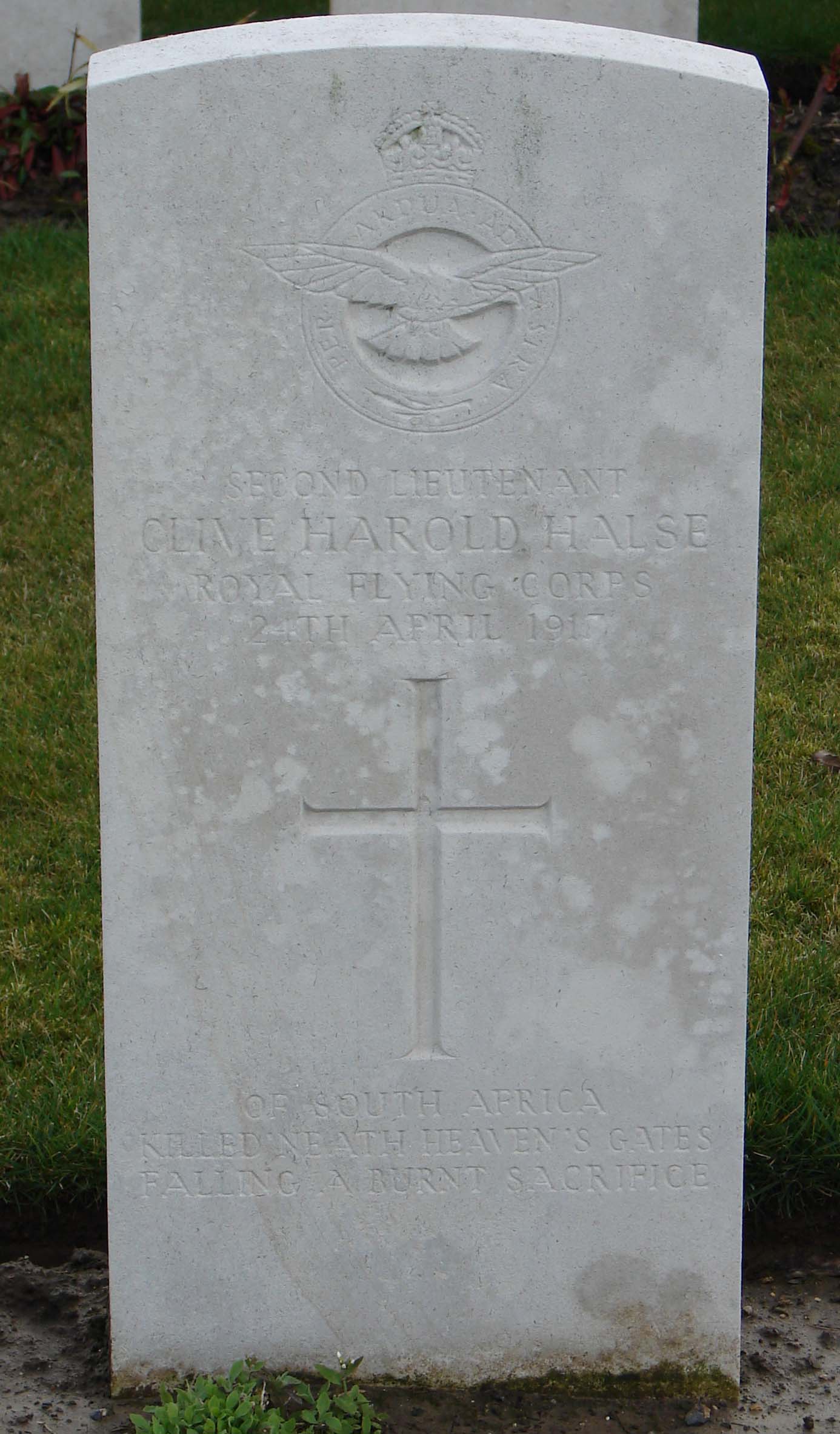 Son of Walter Poultney Halse and Letitia Alice Halse, of Pretoria, South Africa. Attended Kingswood College (Grahamstown) and Selborne College (East London). Originally buried in the German cemetery at Bantouzelle and then his body was moved to its current location. ref. South African Roll of Honour 1914-1918
