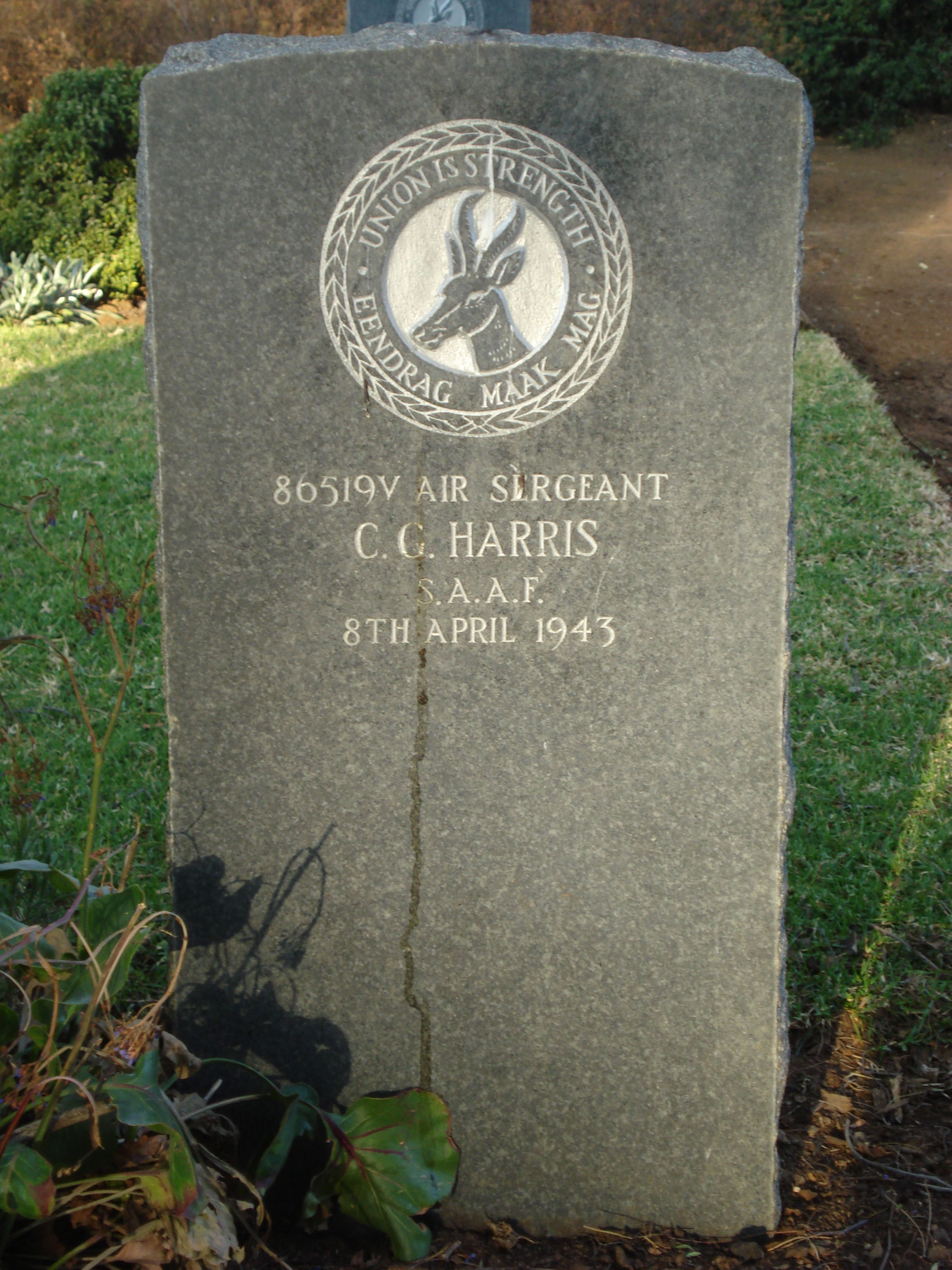 Son of Charles Henry and Annie Louisa Catherine (nee Reston) Harris. Husband of Irene Gladys Harris, of Bloemfontein. Born Ficksburg, Orange Free State.