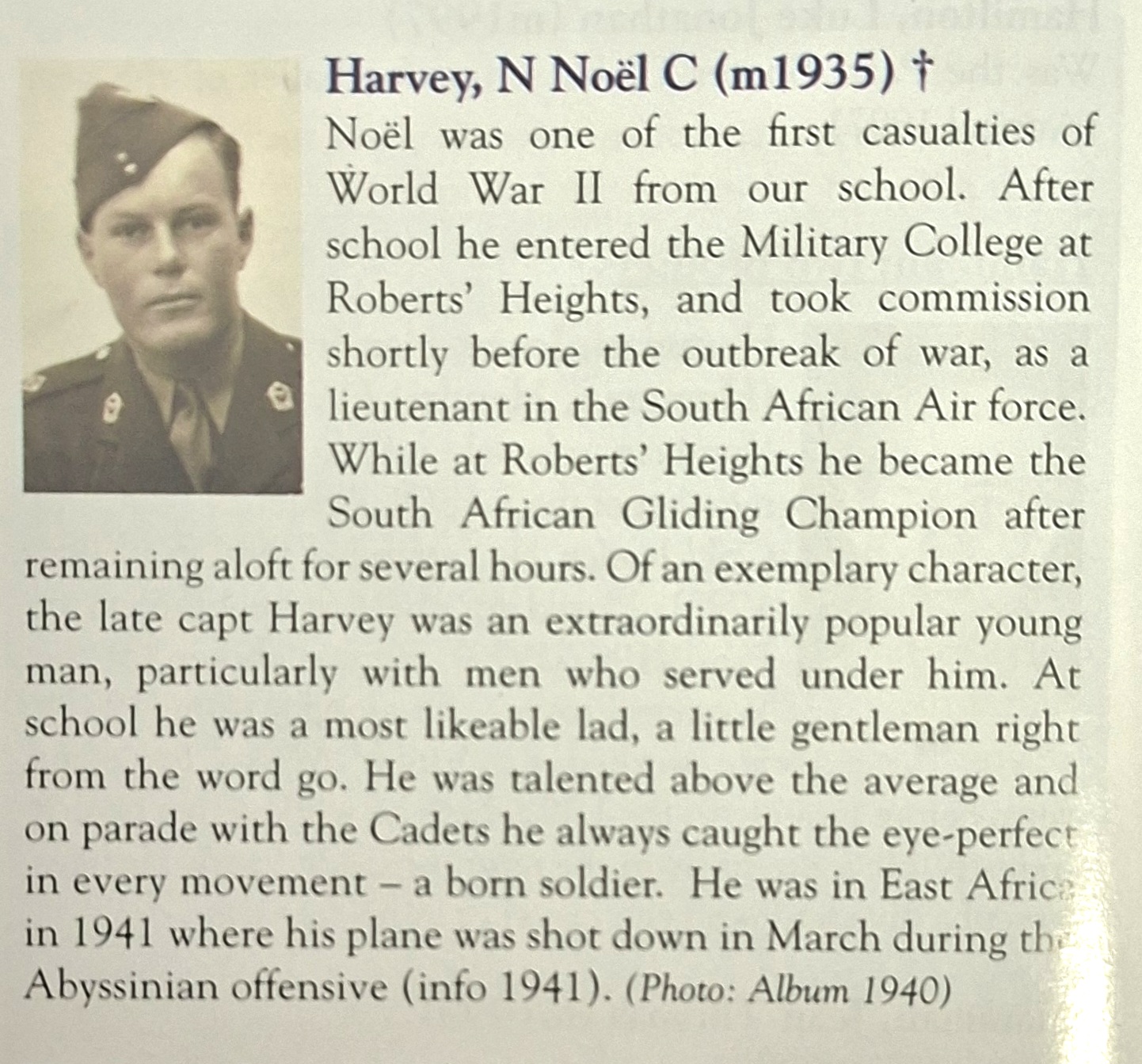 Son of Frederick Charles Stanley and Vivien Emma Mary Harvey (formerly Stanley). Born Cape Town. Educated Paarl Boys High School - 1935. Entered Military College at Roberts Heights after school; South African Gliding Champion |