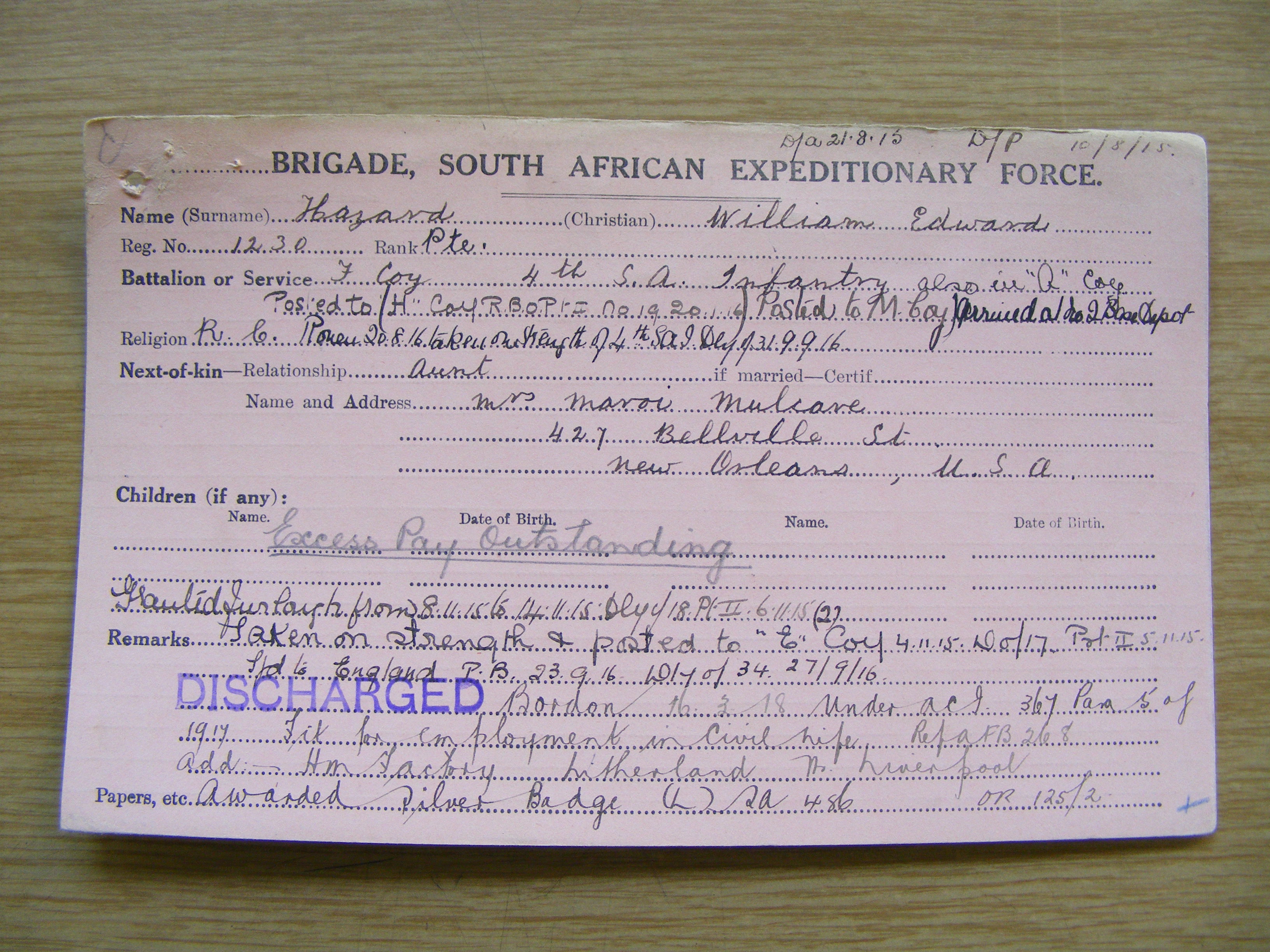 Son of Thomas E. and Bridget Hazard. Born at Algiers, Louisiana, U.S.A.