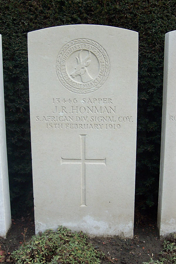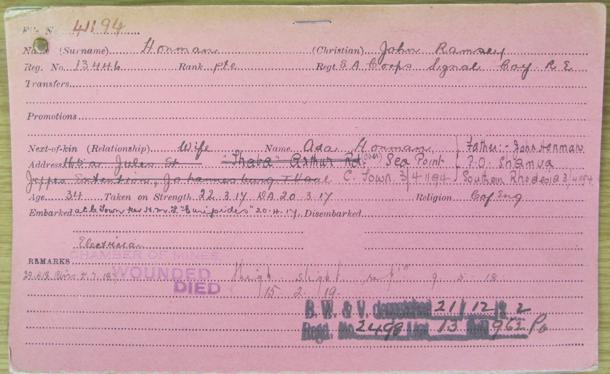 Husband of Mrs. Ada Honman, of 12, Fourth St., La Rochelle, via Johannesburg, South Africa.