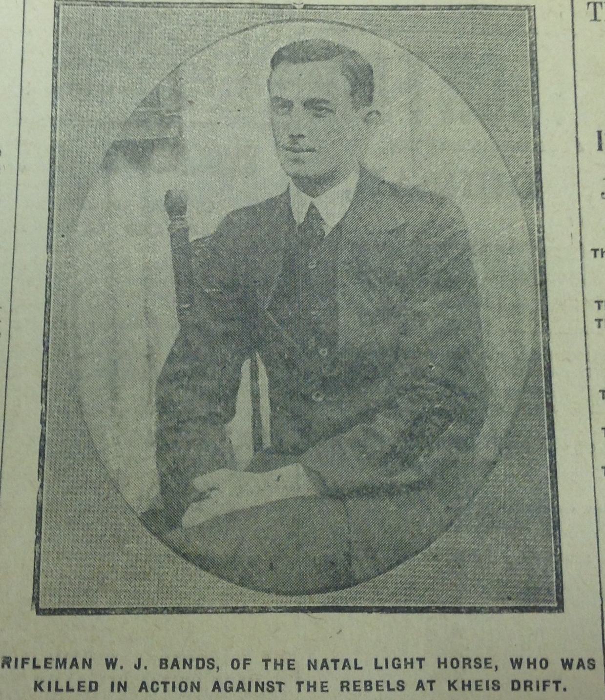Son of John and Alice Maud Bands, of Unionist Party Club, Johannesburg. Born Queenstown. A miner. |