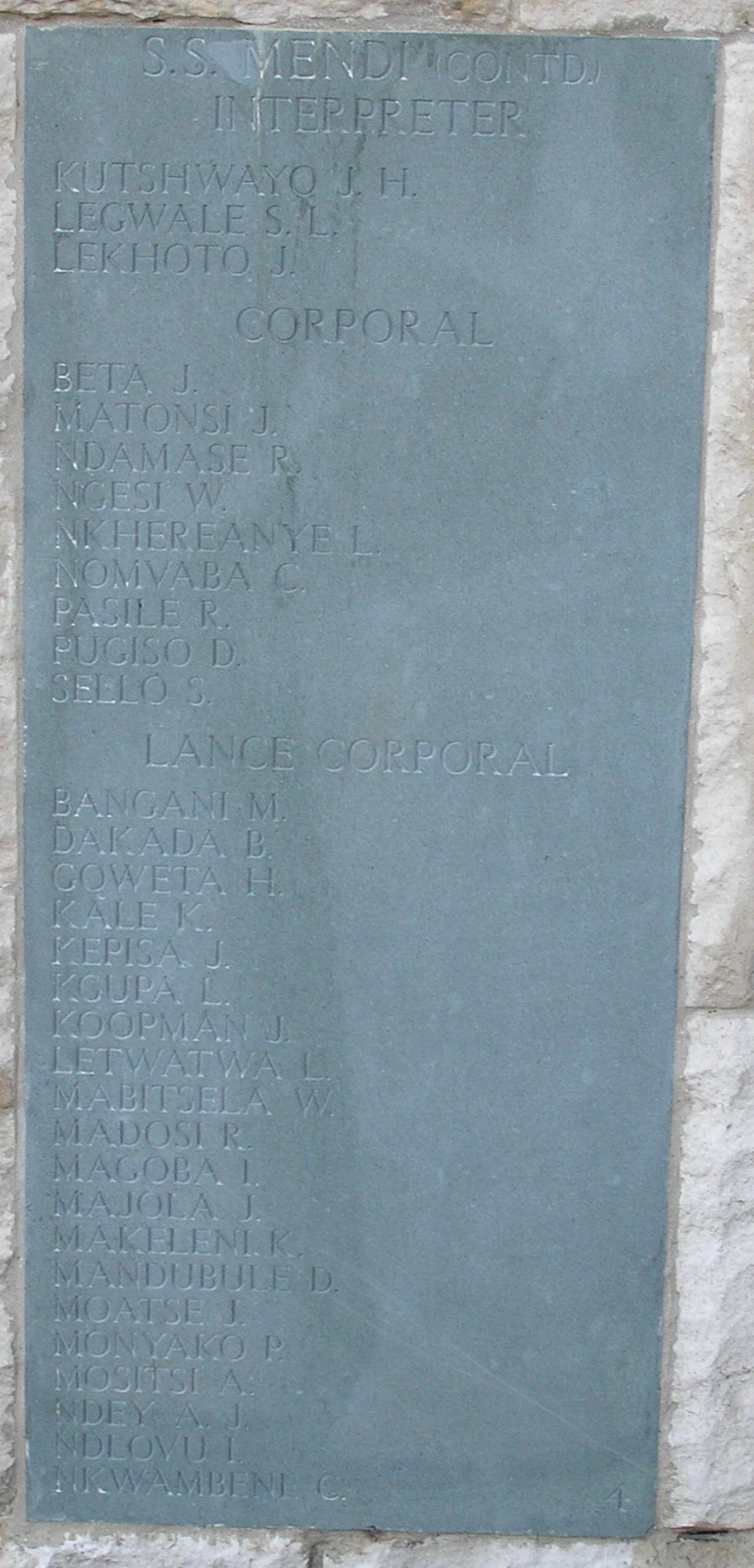 Son of Bangani and husband of Mandala and Mandienakazi, of Nongotwane's Location, Libode, Cape Province. Added in 2007 for Mendi re-dedication. A Pondoland chief. |