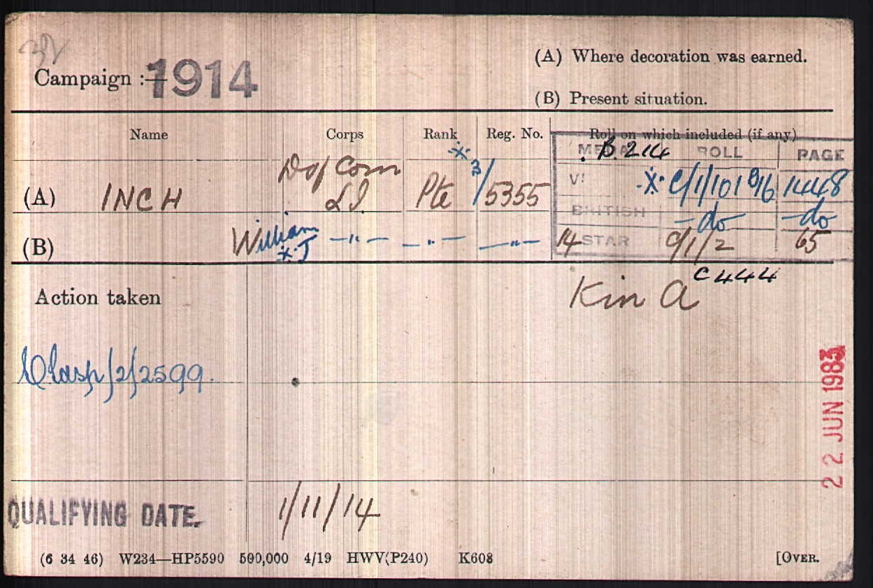 Son of Thomas and Mary Inch, of 28, Mary St., Coburg, Victoria, Australia. Native of Cornwall. Born Ocape, South Africa. Ref. Soldiers Died in Great War CD