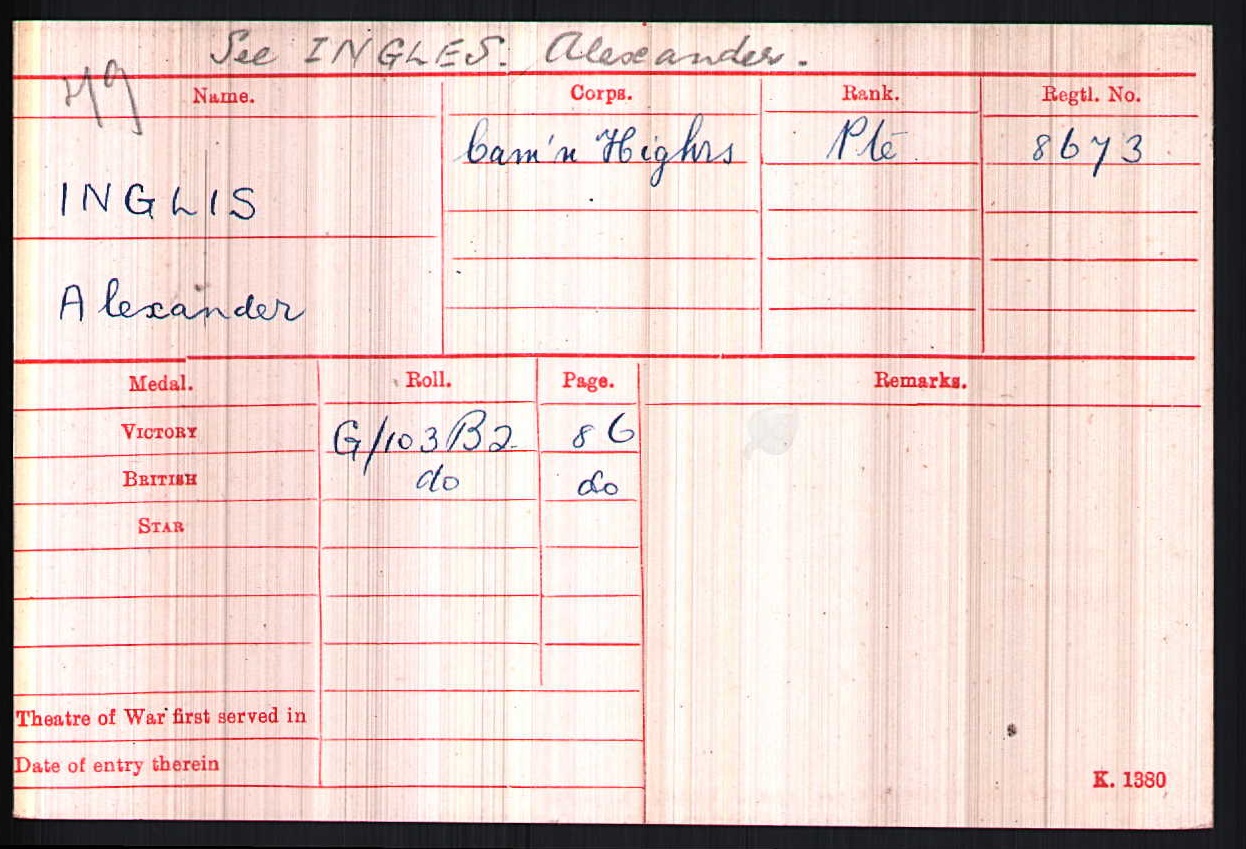 Son of Alexander and Ellen Inglis, of 63, Spruson St., North Sydney, New South Wales, Australia. Born Kimberley, South Africa. ref. Soldiers Died in Great War CD