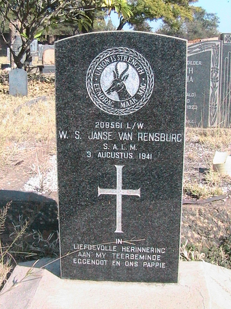 Son of Casper Johannes and Elizabetha Maria Janse van Rensburg. Husband of Johanna Jakoba Janse van Rensburg, of Rustenburg. Born Soutpansdrift, District Rustenberg.