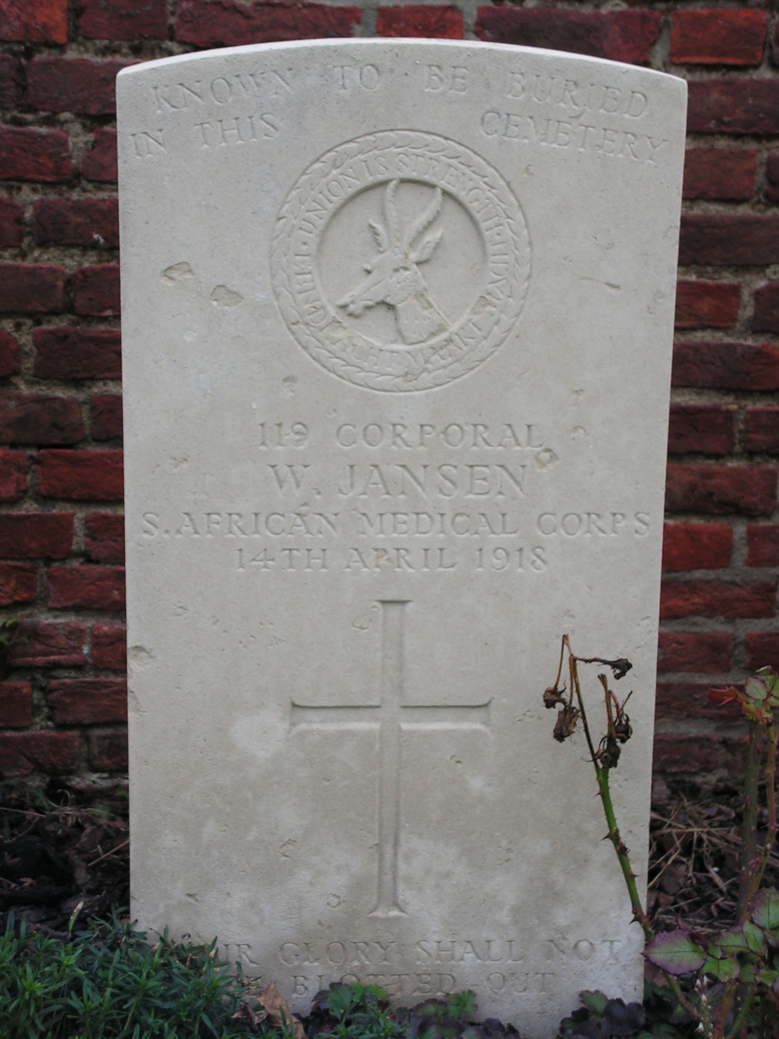 Husband of Florence Jansen, of Robben Island, Cape Town. On Robben Island Garrison Church Memorial