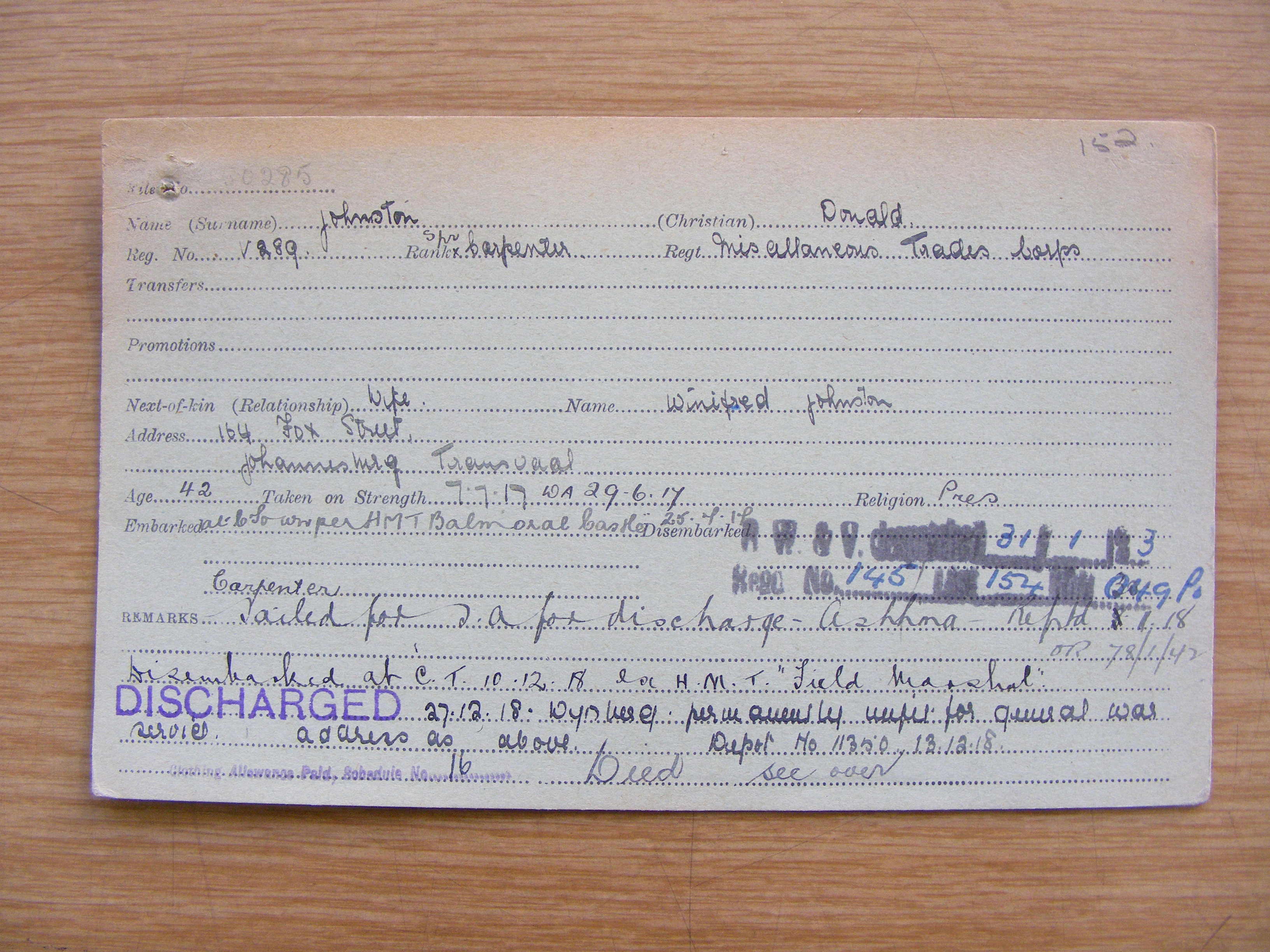 Husband of Emma Winefride Johnston, of 164, Fox St., Johannesburg.