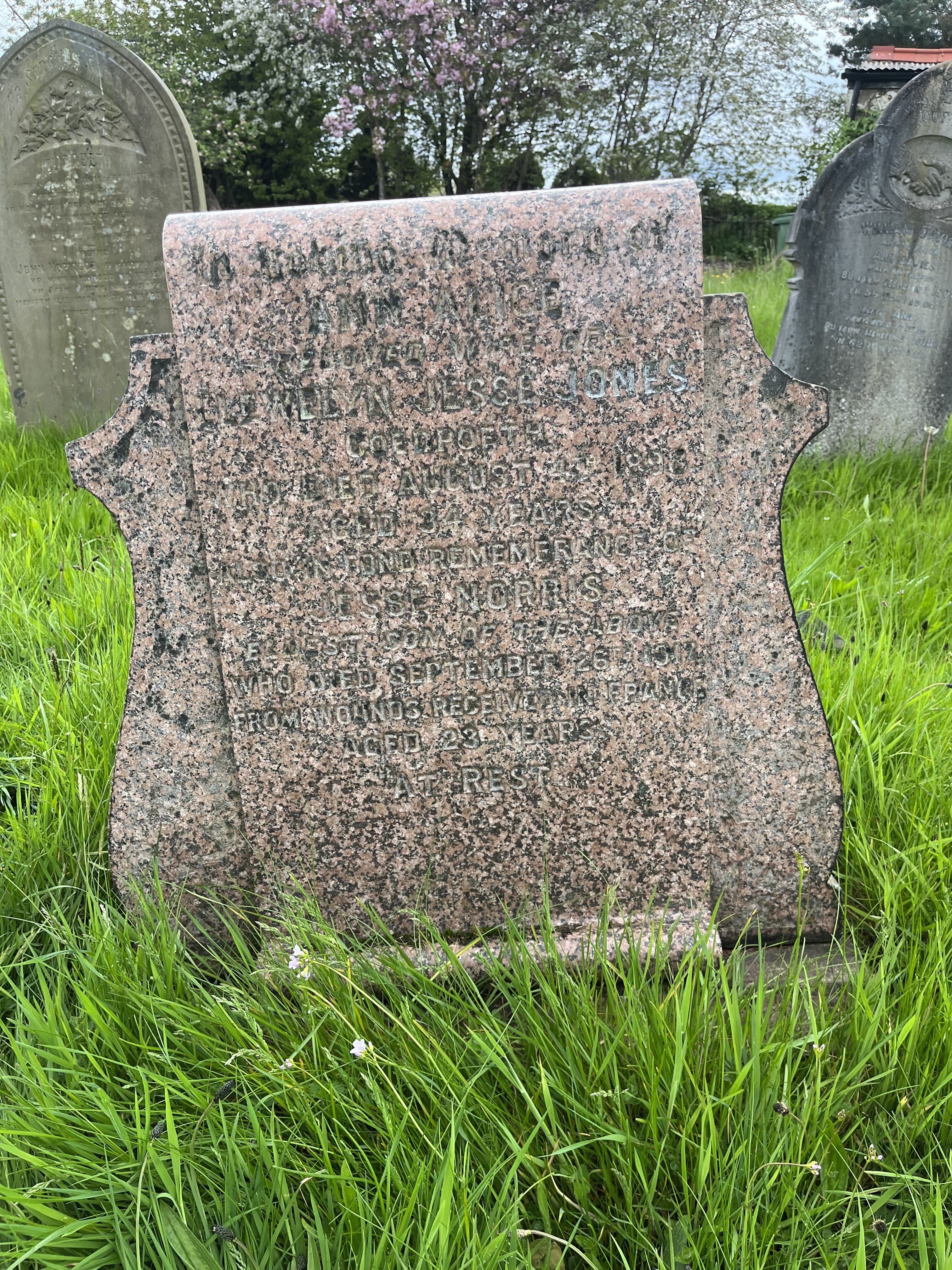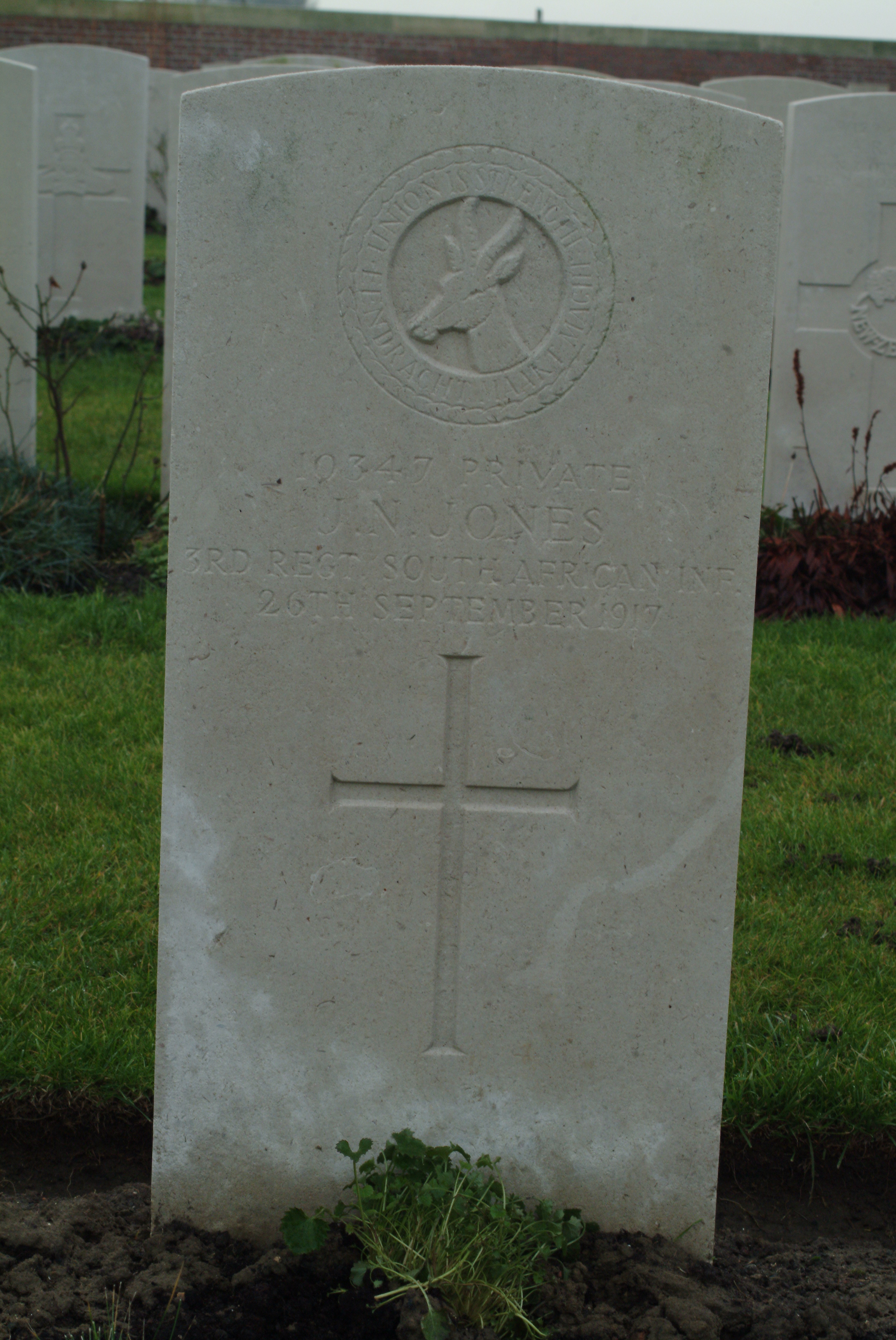 Son of Llewelyn Jesse and Ann Alice Jones, of Coedpoeth, Wrexham, Wales. Husband of Hester Jones, of Jeppes, Johannesburg. Born Wrexham, Wales, in 1894. A miner. Commemoration stone in Coedpoeth Cemetery, Wrexham, Wales