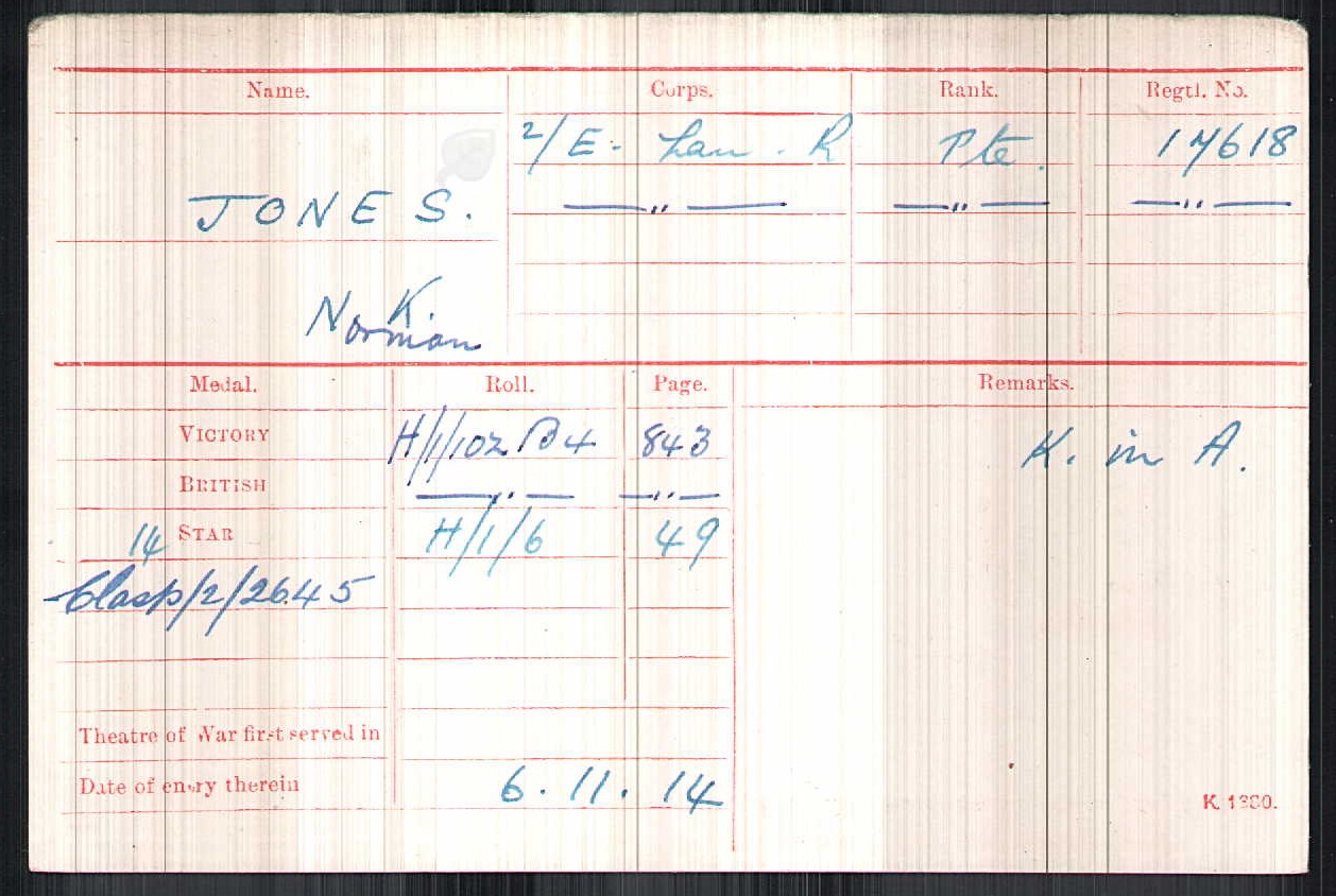 Son of John and Caroline Keppel Jones, of Roslyn, Tamboers Kloof, Cape Town, South Africa. Born Dulwich, Surrey. Commemorated on Wynberg Boys' High School War Memorial gates
