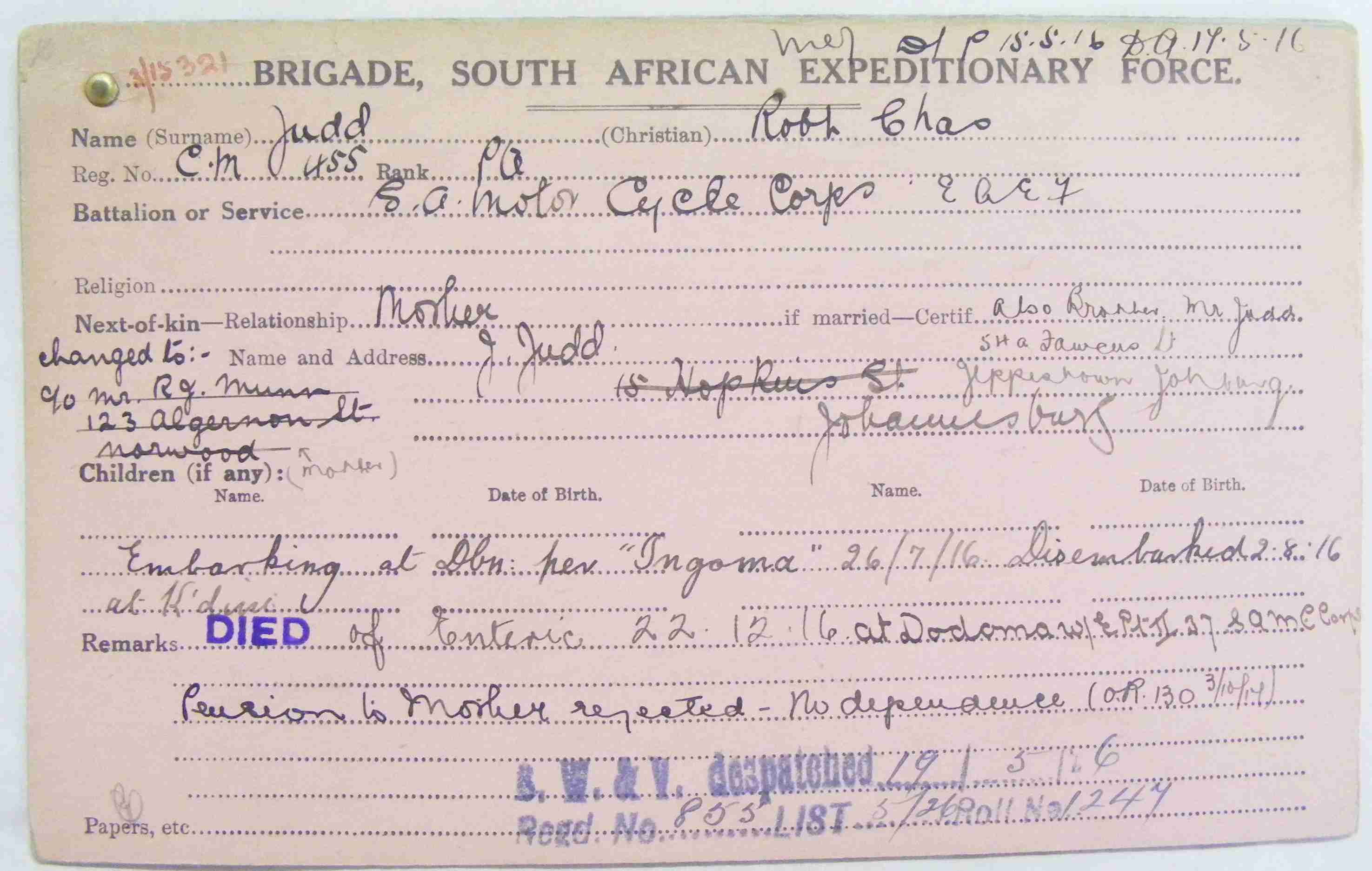 Son of Mrs. J. Judd, of 445, Jules St., Merlsurn, Johannesburg.