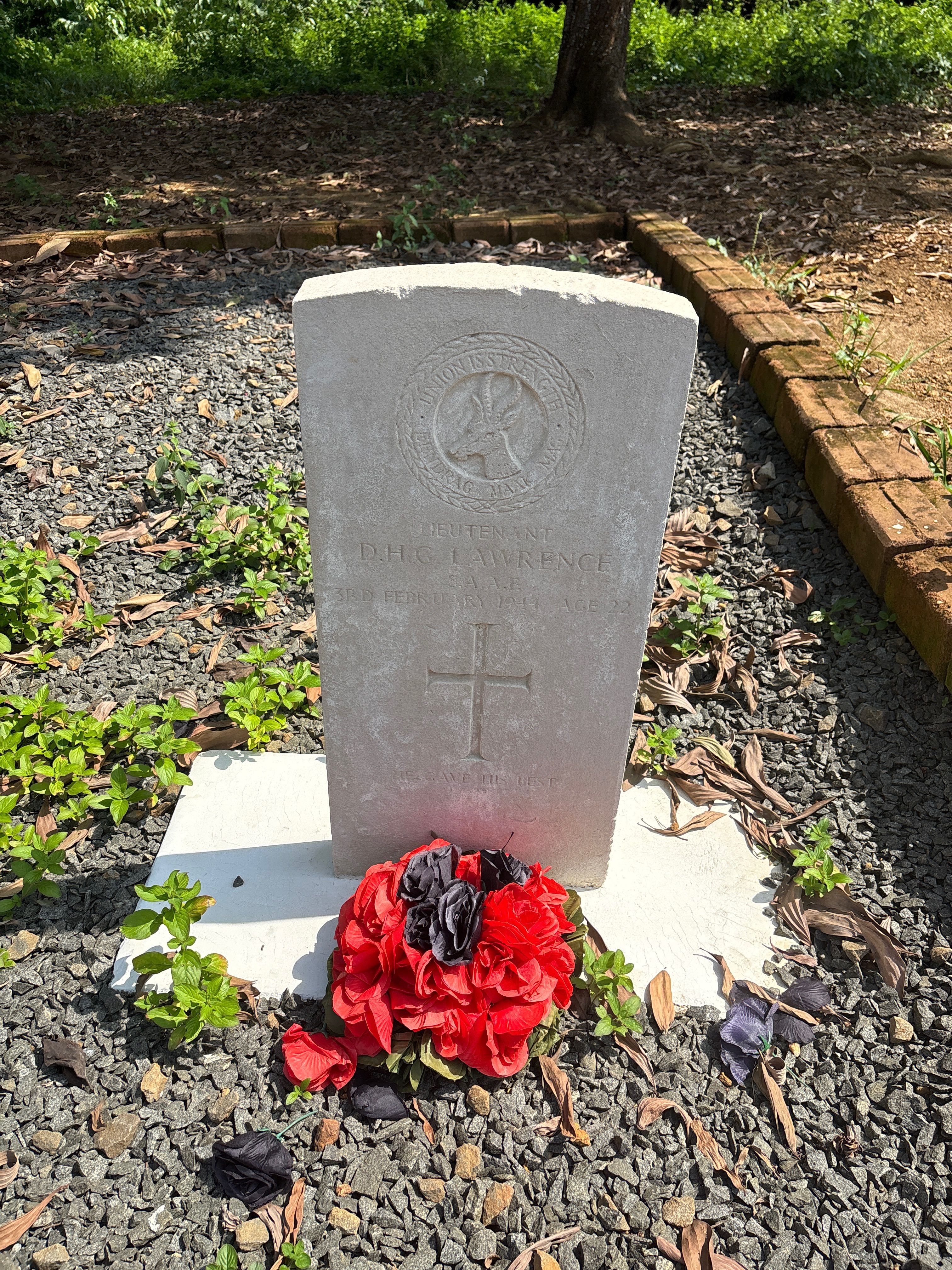 Son of Harold Alfred and Violet Mabel Lawrence, of Katberg, Cape Province, South Africa. Born Fort Beaufort. Educated at St. Andrew's College, Grahamstown. An articled clerk.
