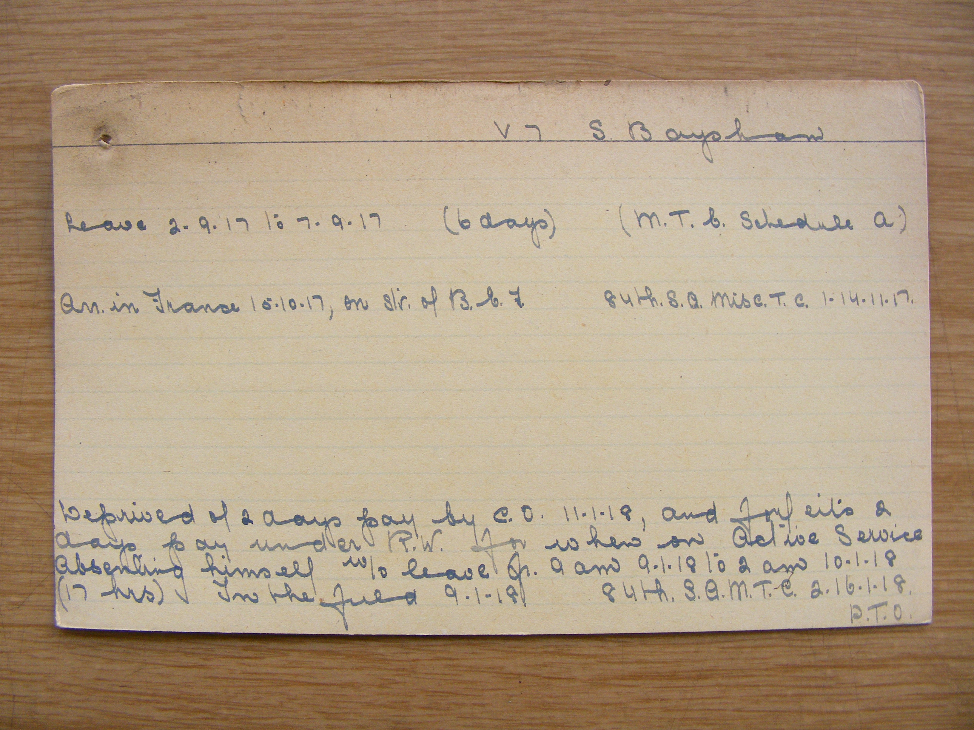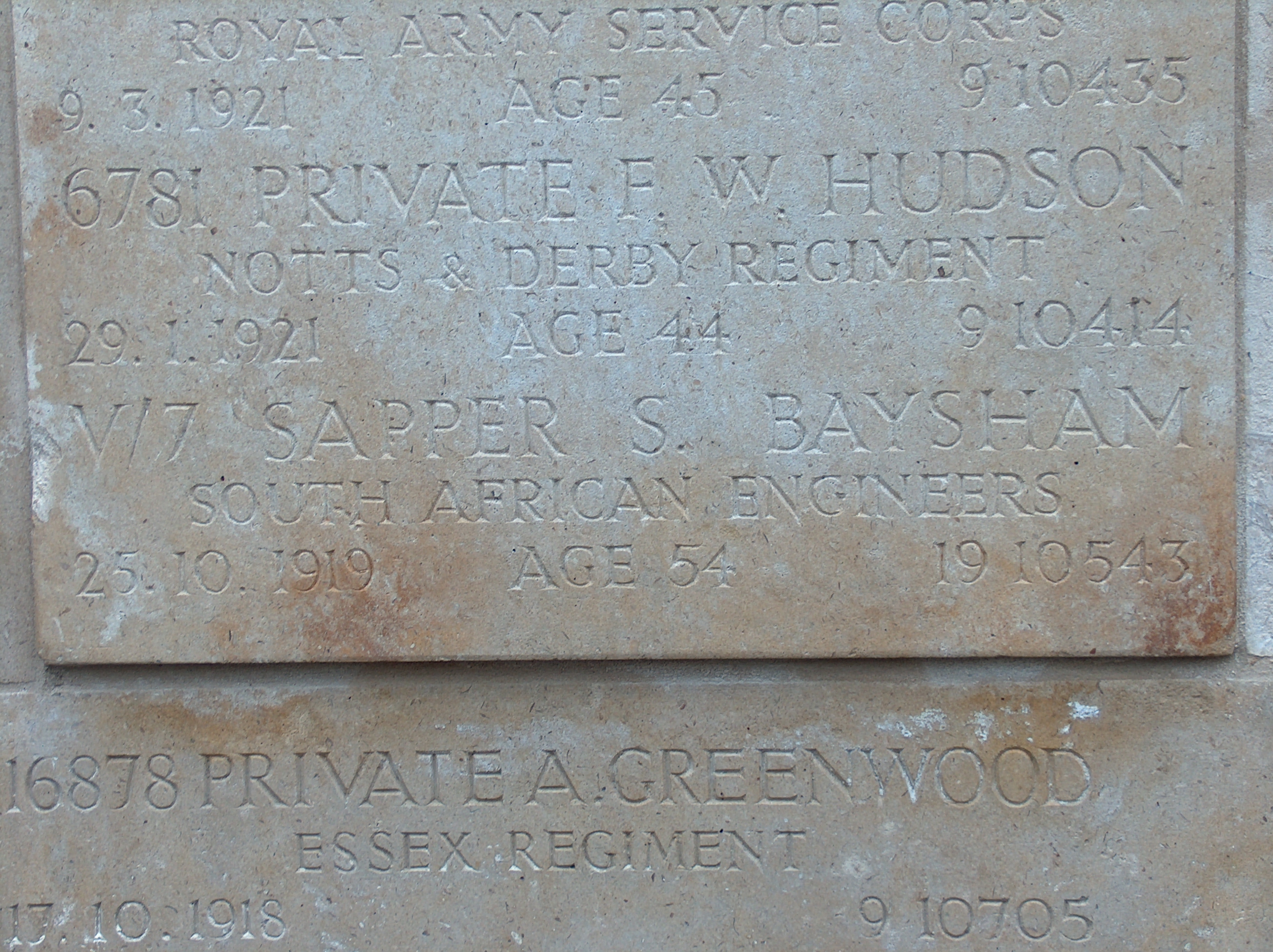 Son of Samuel Baysham; husband of Katherine Baysham, of 215, Shalbourne Rd., Bournemouth, England. Born London, England. Served in the South African Campaign. A tailor