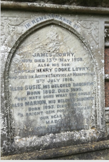 Son of James Lowry, J.P. and Susanna Milliken Warden Lowry, of Magheramorne, Co. Antrim. Born Belfast, Co. Antrim, Northern Ireland. Commemoration stone in Greyabbey Cemetery. ref. South African Roll of Honour 1914-1918