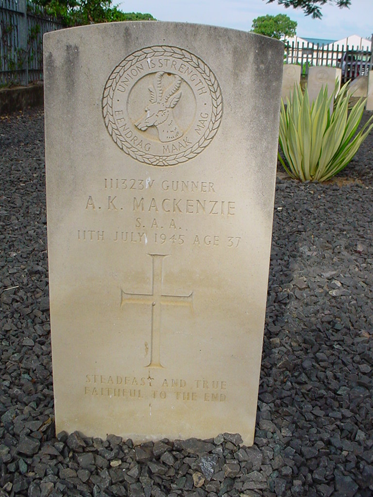 Son of Professor Alexander Herbert Mackenzie and Mary Grahame (nee Russell) Mackenzie, of Stellenbosch, Cape Province, South Africa. B.A. Born Stellenbosch. |
