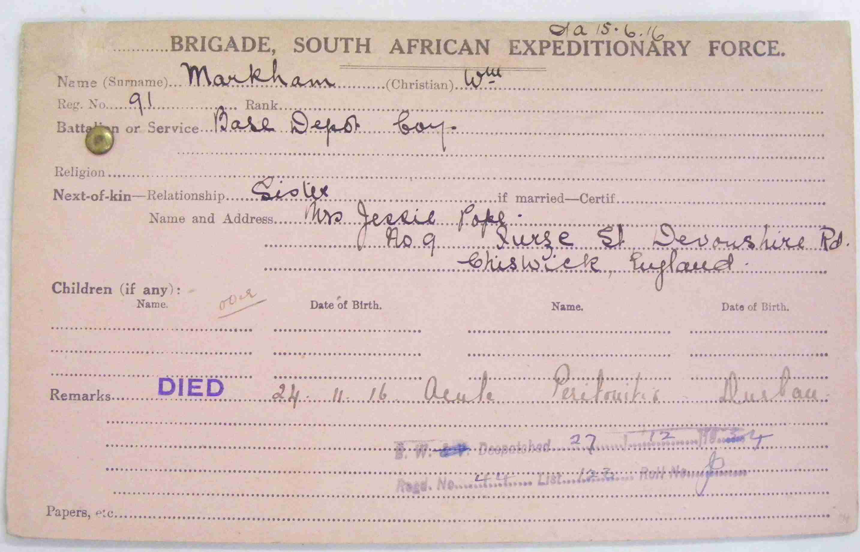 Base Depot Coy. (Durban)Other Casualties from this Unit |