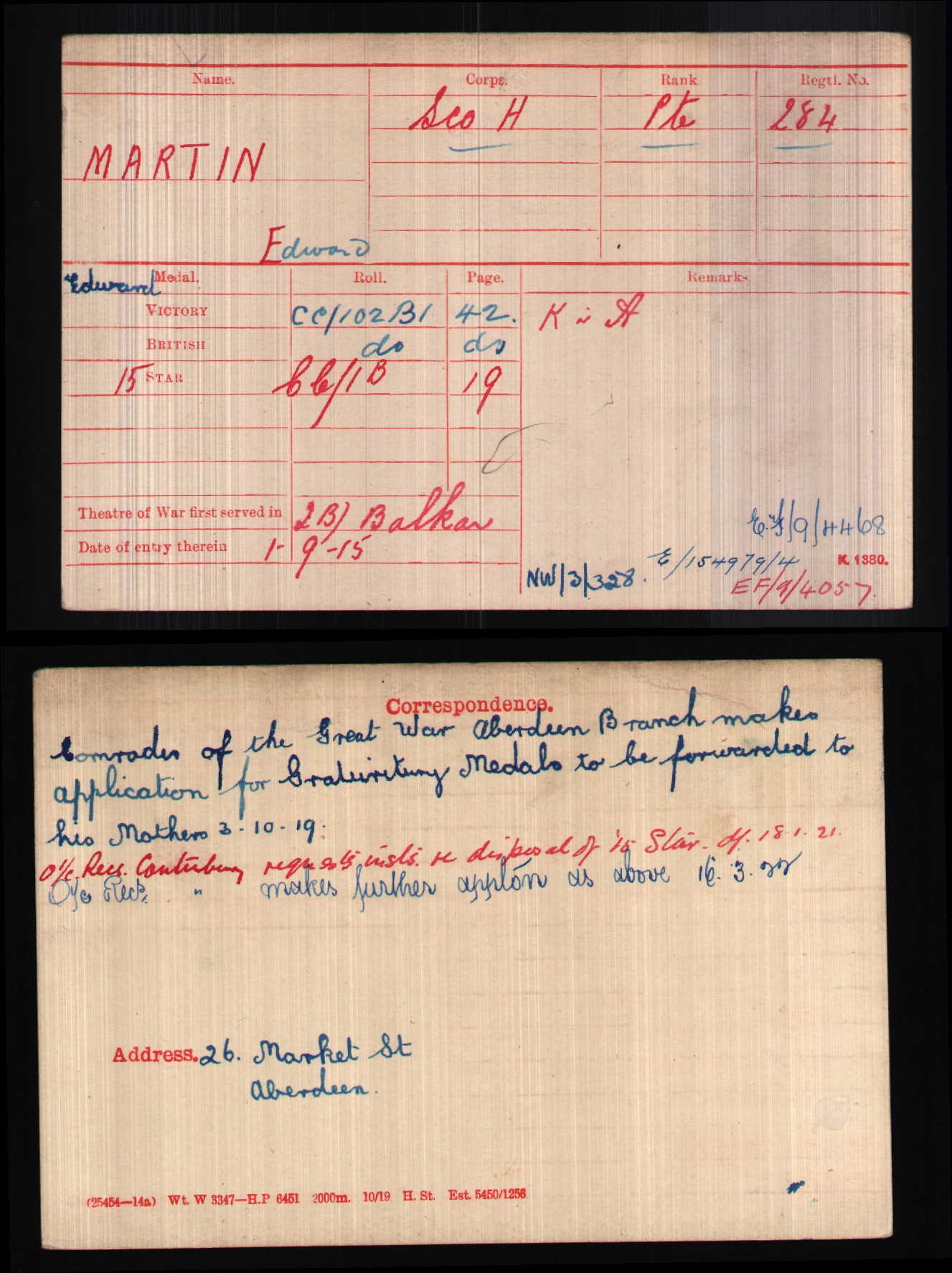Son of Edward and Margaret Martin, of 5, Linksfield Place, Aberdeen. Born Estcourt, Natal, South Africa. Commemoration stone in Allenvale Cemetery, Aberdeen, Scotland. ref. Soldiers Died in Great War CD