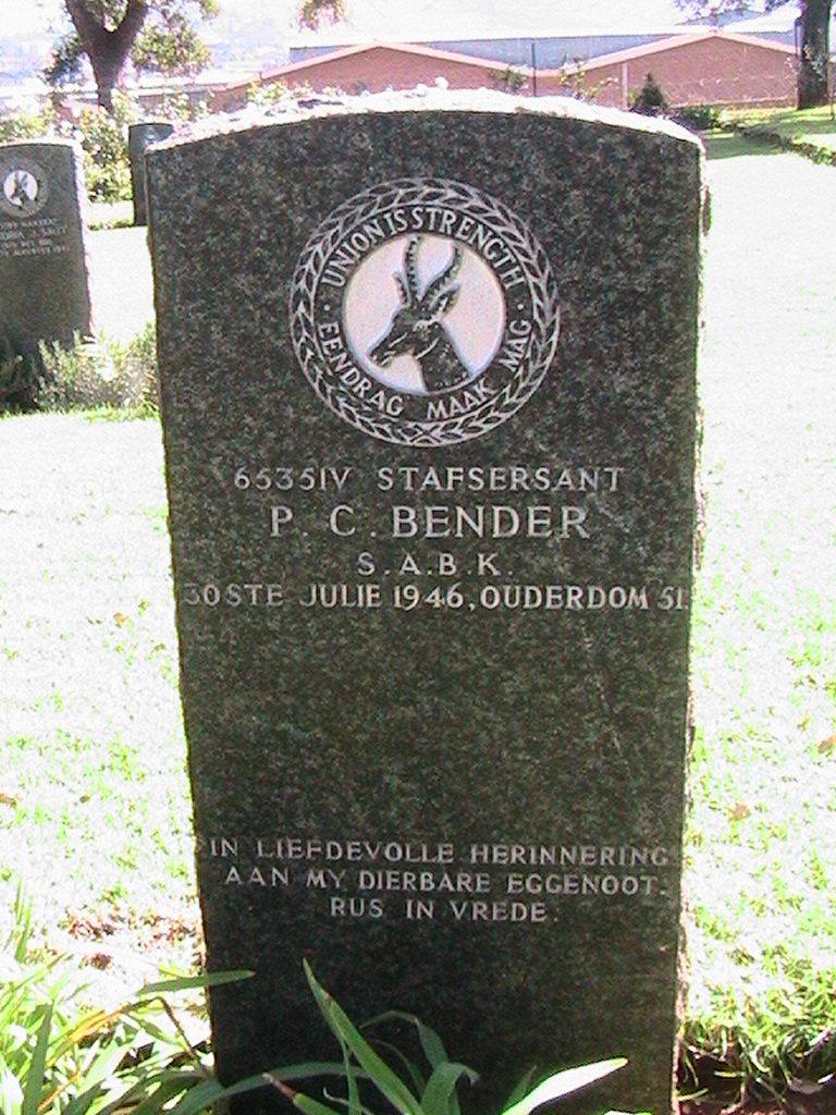 Husband of Elizabeth C. Bender, of Vryburg, Cape Province.