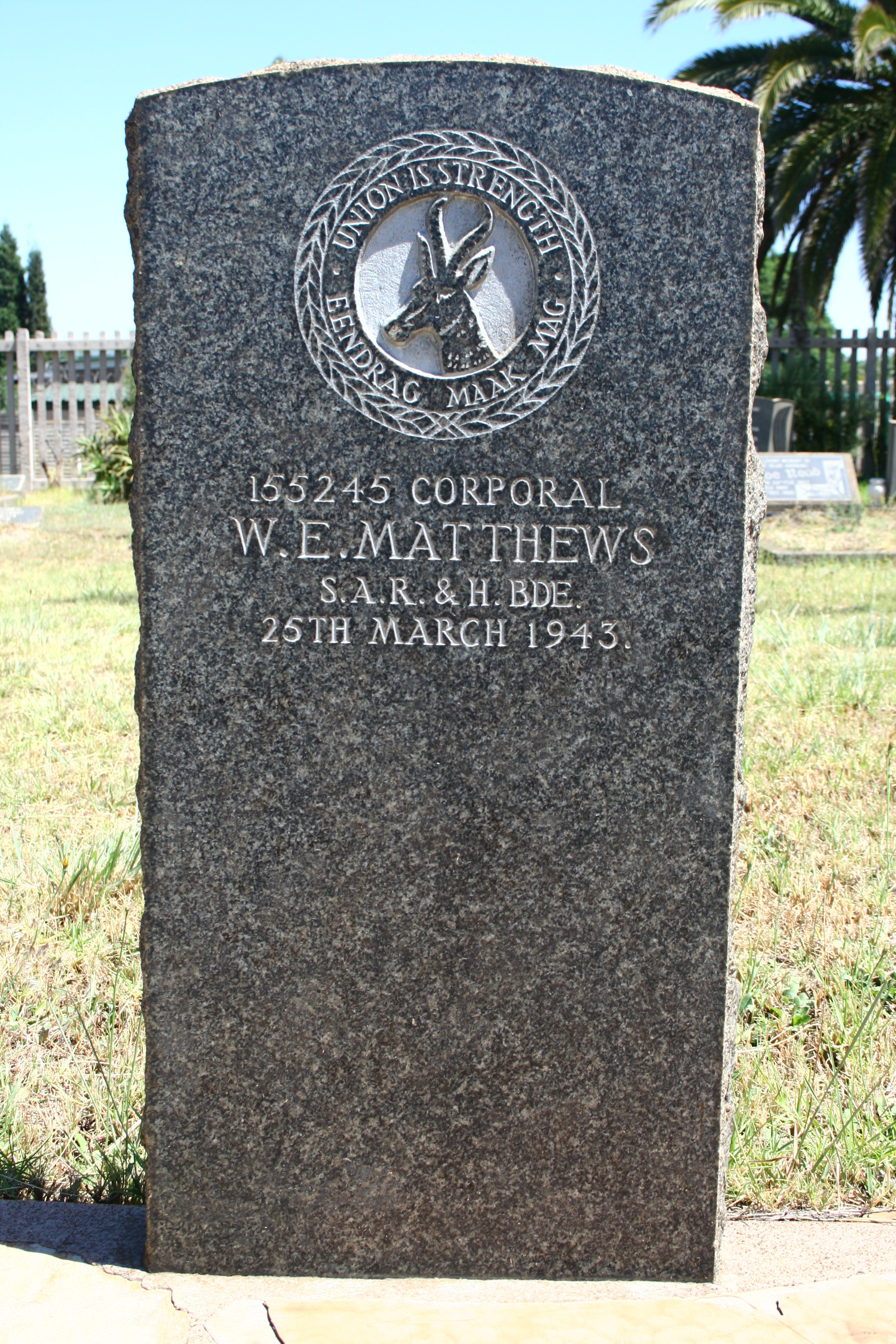 Husband of Aletta Petronella Matthews, of Pretoria. Born Port Elizabeth. A storeman for South African Railways