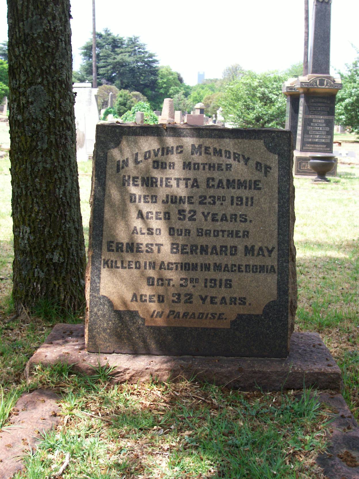 Of Salisbury, Southern Rhodesia. Commemoration stone in Johannesburg (Brixton) Cemetery. ref. South African Roll of Honour 1914-1918 |