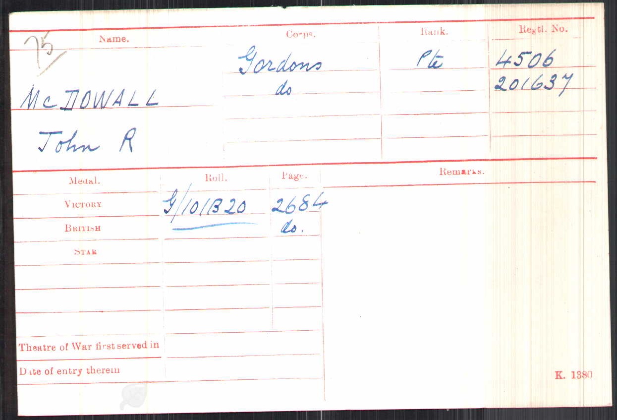 Son of John and Jemima McDowall, of Johannesburg, South Africa. Born Glasgow, Scotland