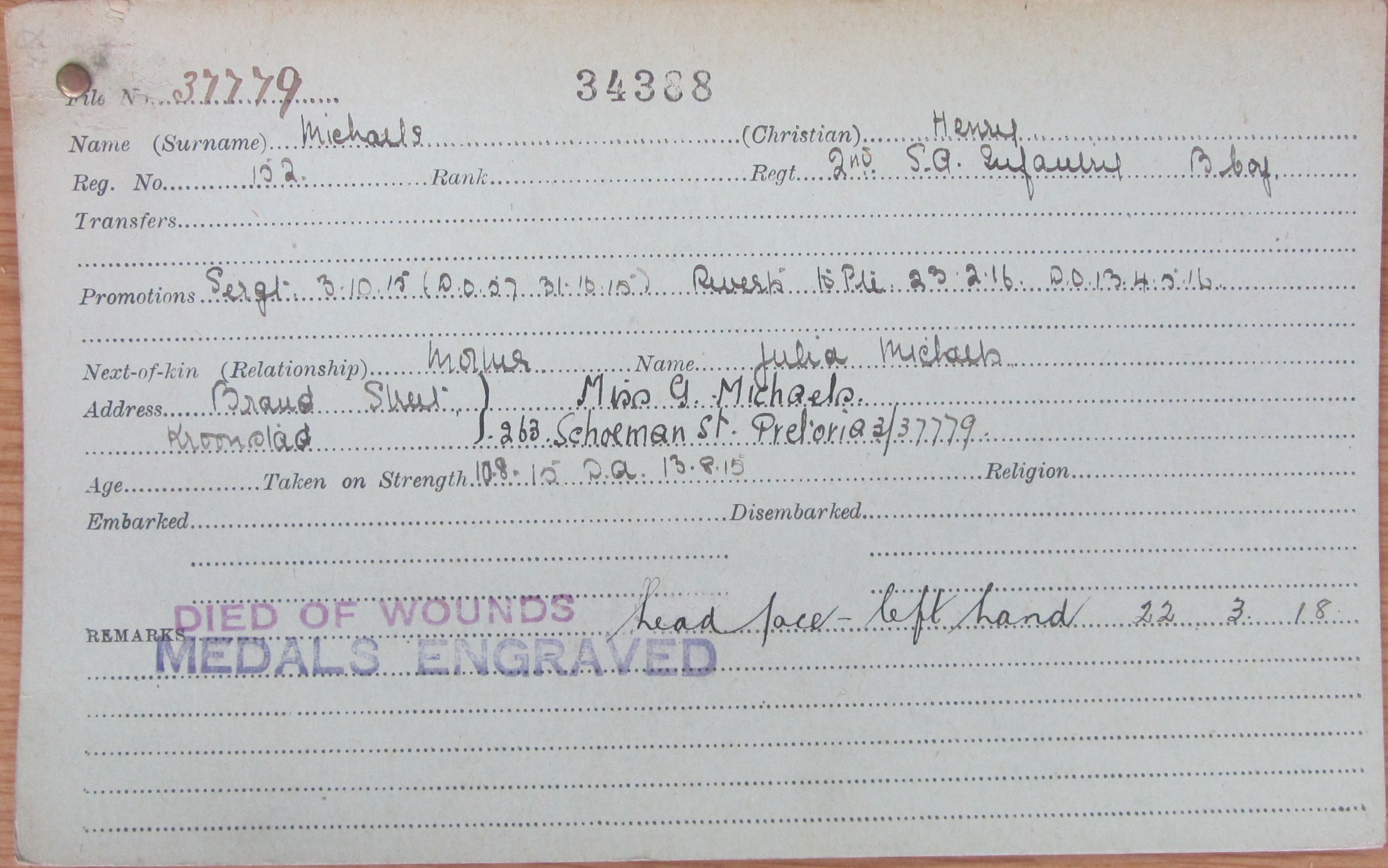 Son of H. and Julia Michaels, of Kroonstad, Orange Free State. ***Jewish |