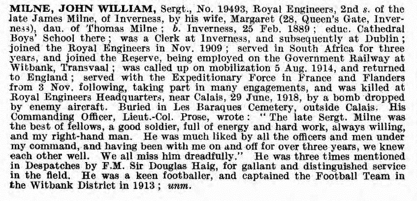 Son of James and Margaret Milne, of 12, Culduthel Rd., Inverness. Lived in Witbank, Transvaal