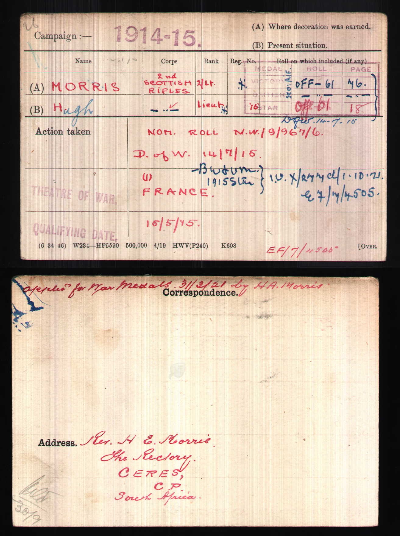 Son of the Rev. Henry Elliott Morris and Maria Morris, of The Rectory, Ceres, Cape Province, South Africa. Born Rondebosch, Cape Town.