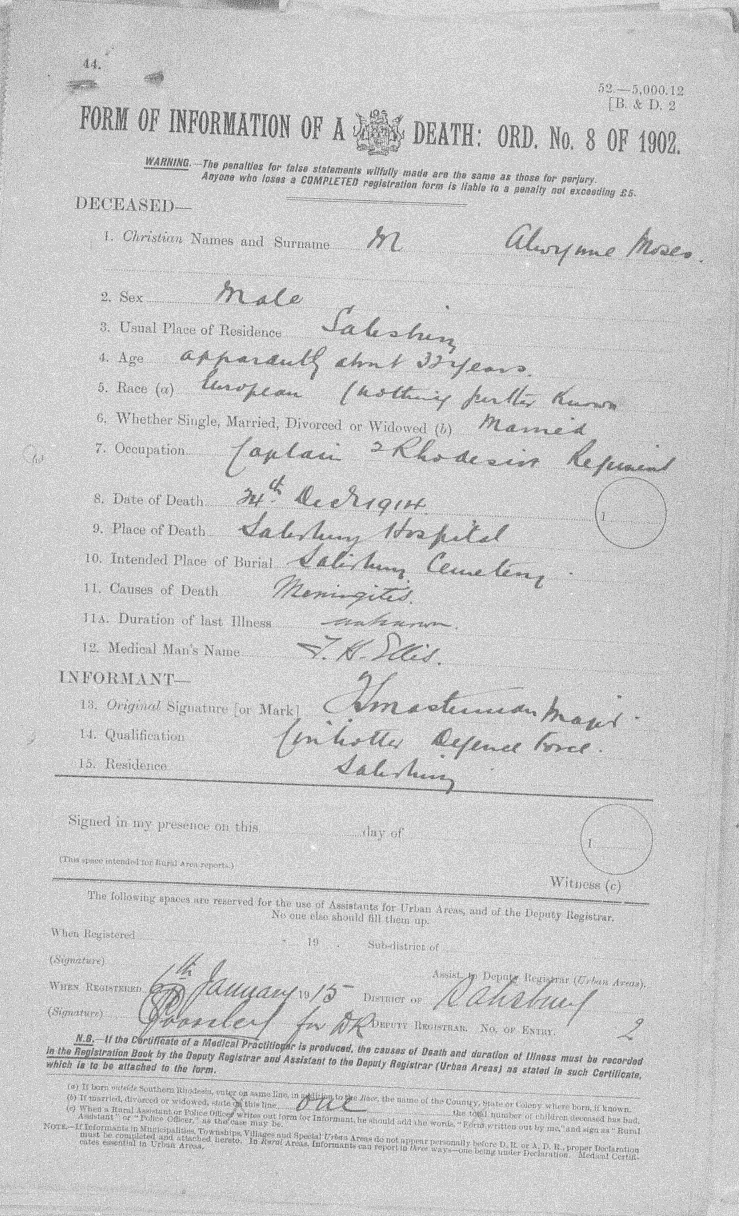 Died of meningitis
