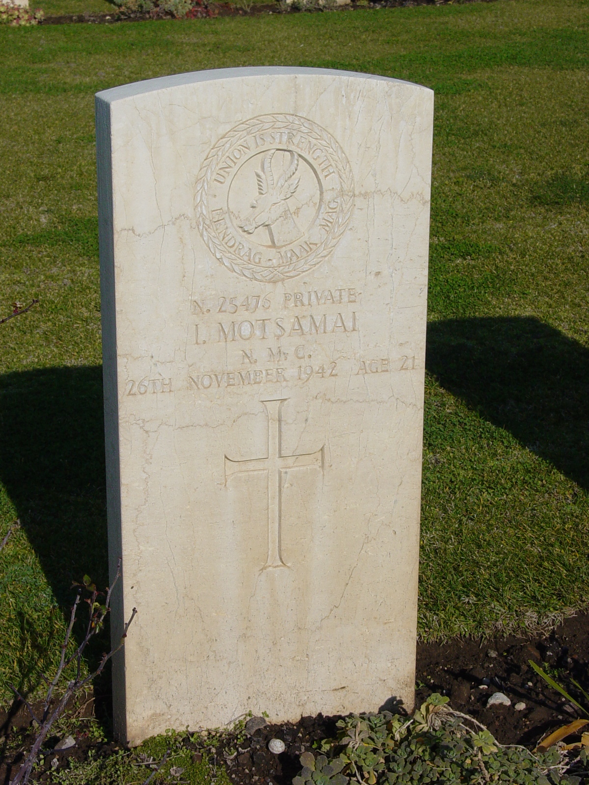 Son of George and Josefina Motsamai, of Wolmaransstad, Transvaal, South Africa.