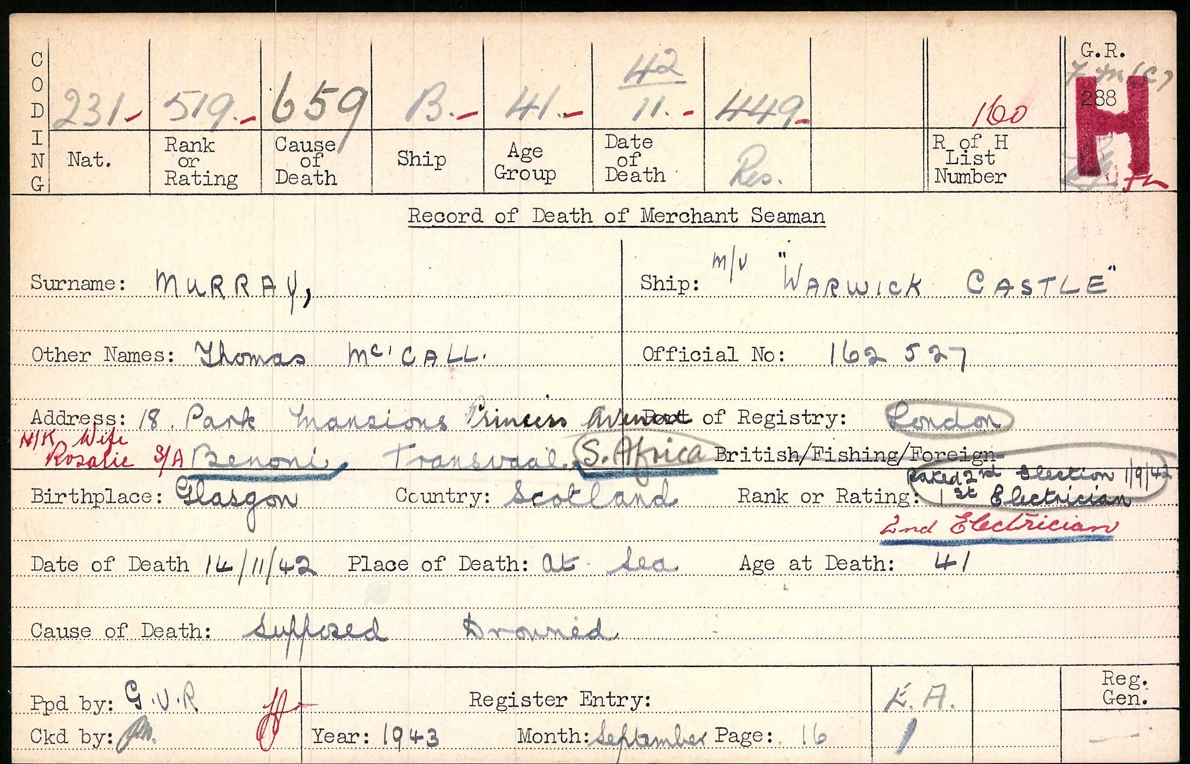 Son of Mrs. J. B. Murray, of Rothesay, Isle of Bute; husband of Rosalie Murray (nee Law), of Benoni, Transvaal, South Africa.