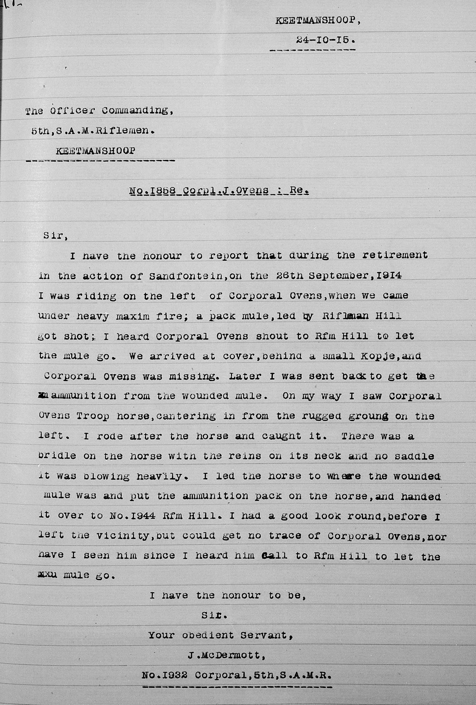 Killed in action, at Sandfontein |