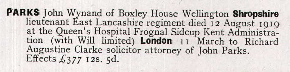 Son of John and Annie Frances Parks, of Newcastle, Natal, South Africa. |