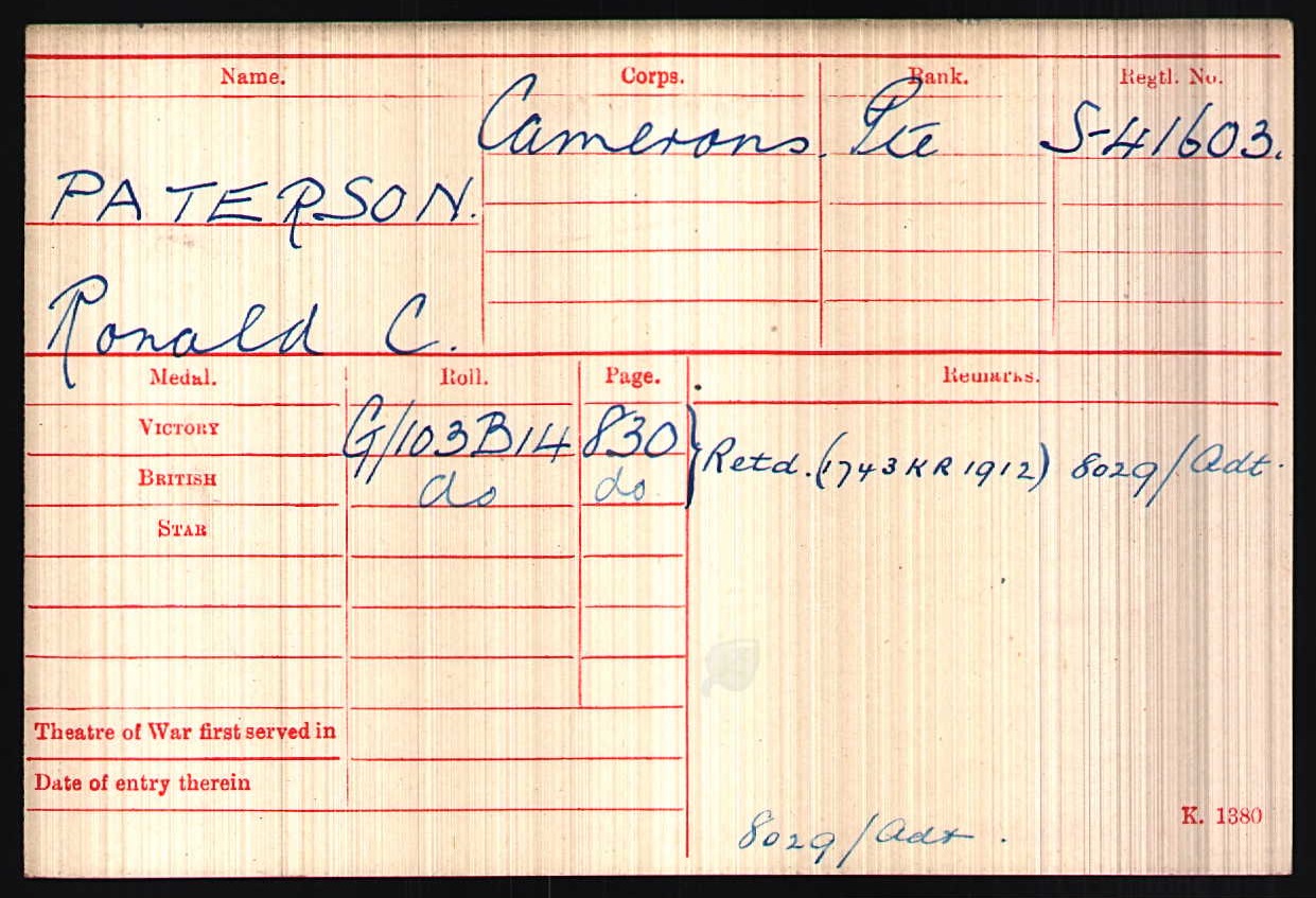 formerly 100697 R.F.C., 20684 Gordon Hldrs., 29049 Lovat Scouts. |