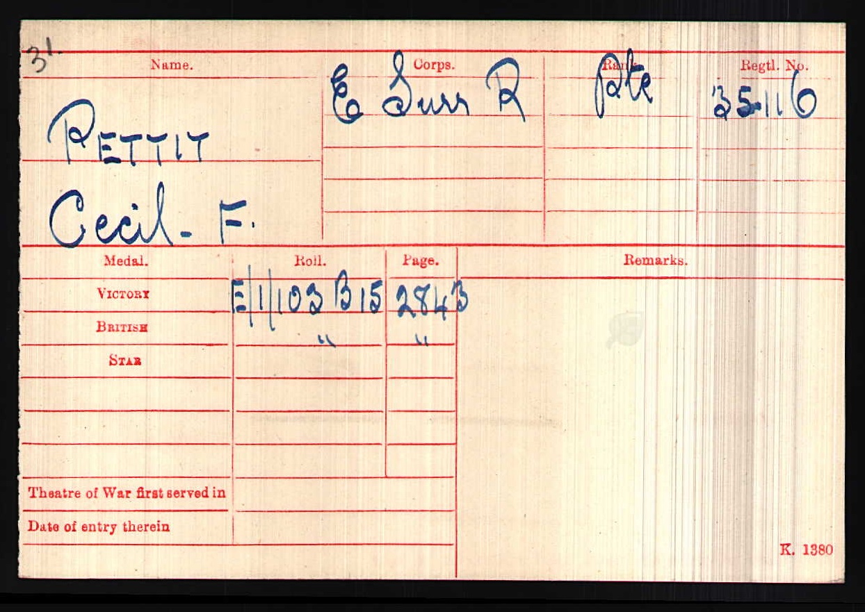 Son of the late George Boote Pettit and Rosina Isabella Pettit, of Durban, South Africa.
