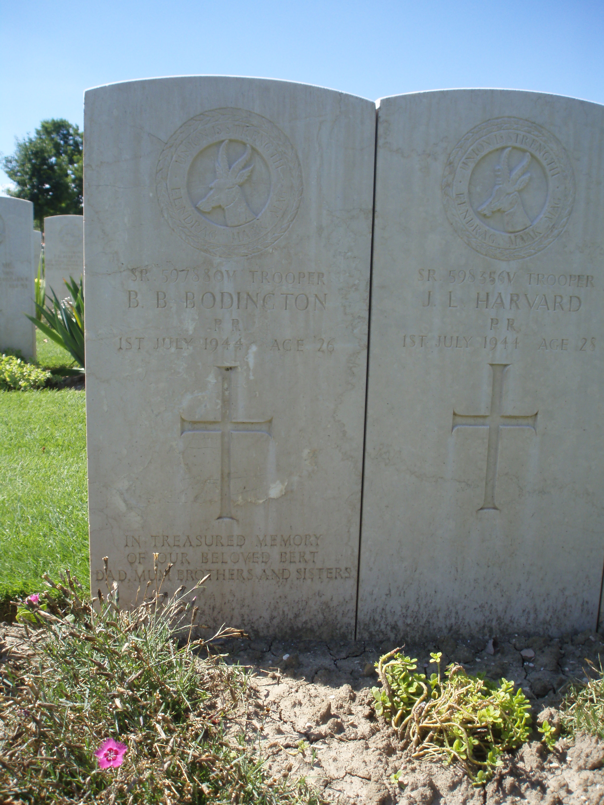 Son of Charles Robert and Jessie Georgina (nee McMaster) Bodington, of 132 Abercorn Street, Bulawayo, Southern Rhodesia. Born Hanover, Cape Province. A driver. He was unmarried. |