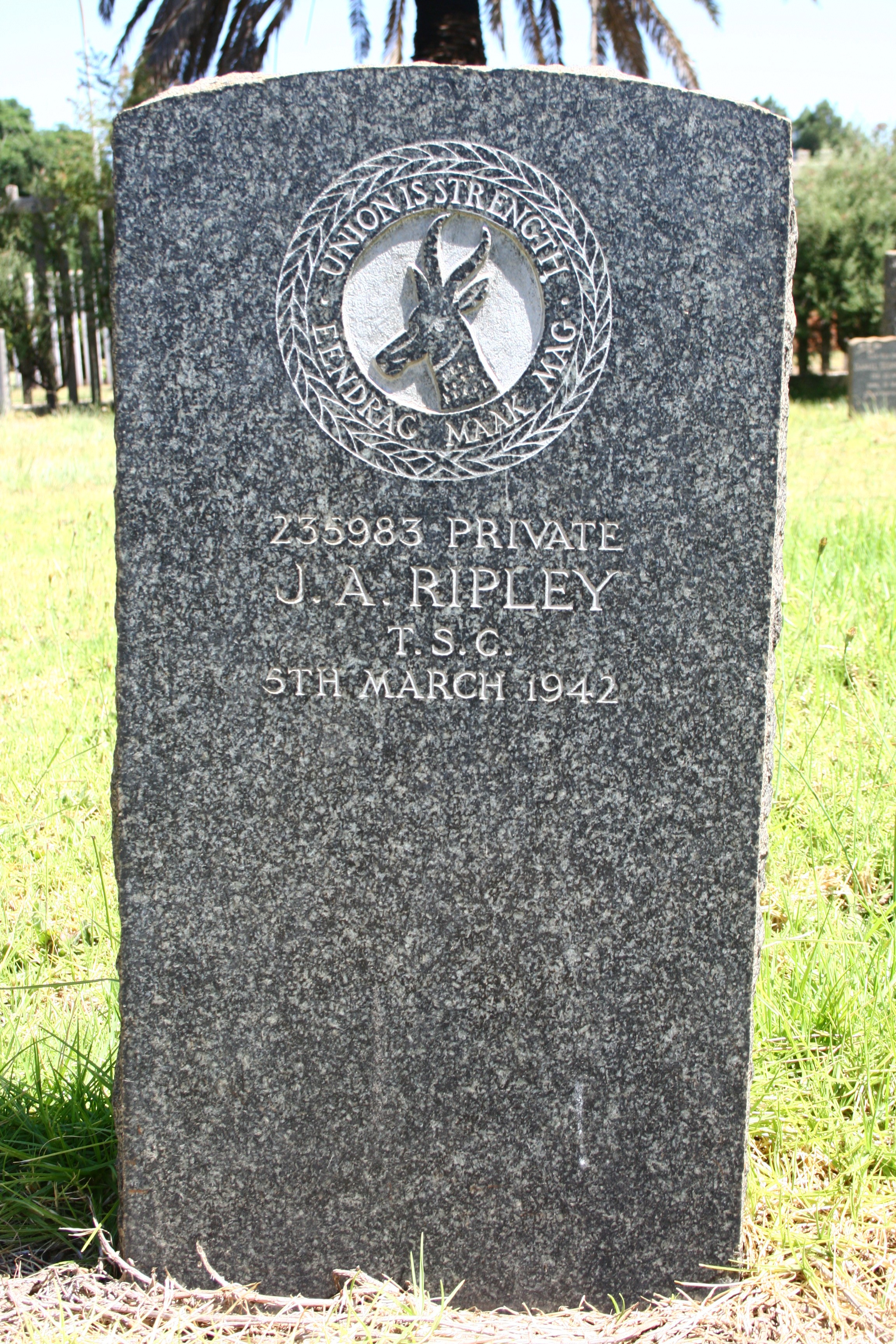 Husband of Helena Susanna Ripley, of Witbank. Born Lancashire, England. A miner.