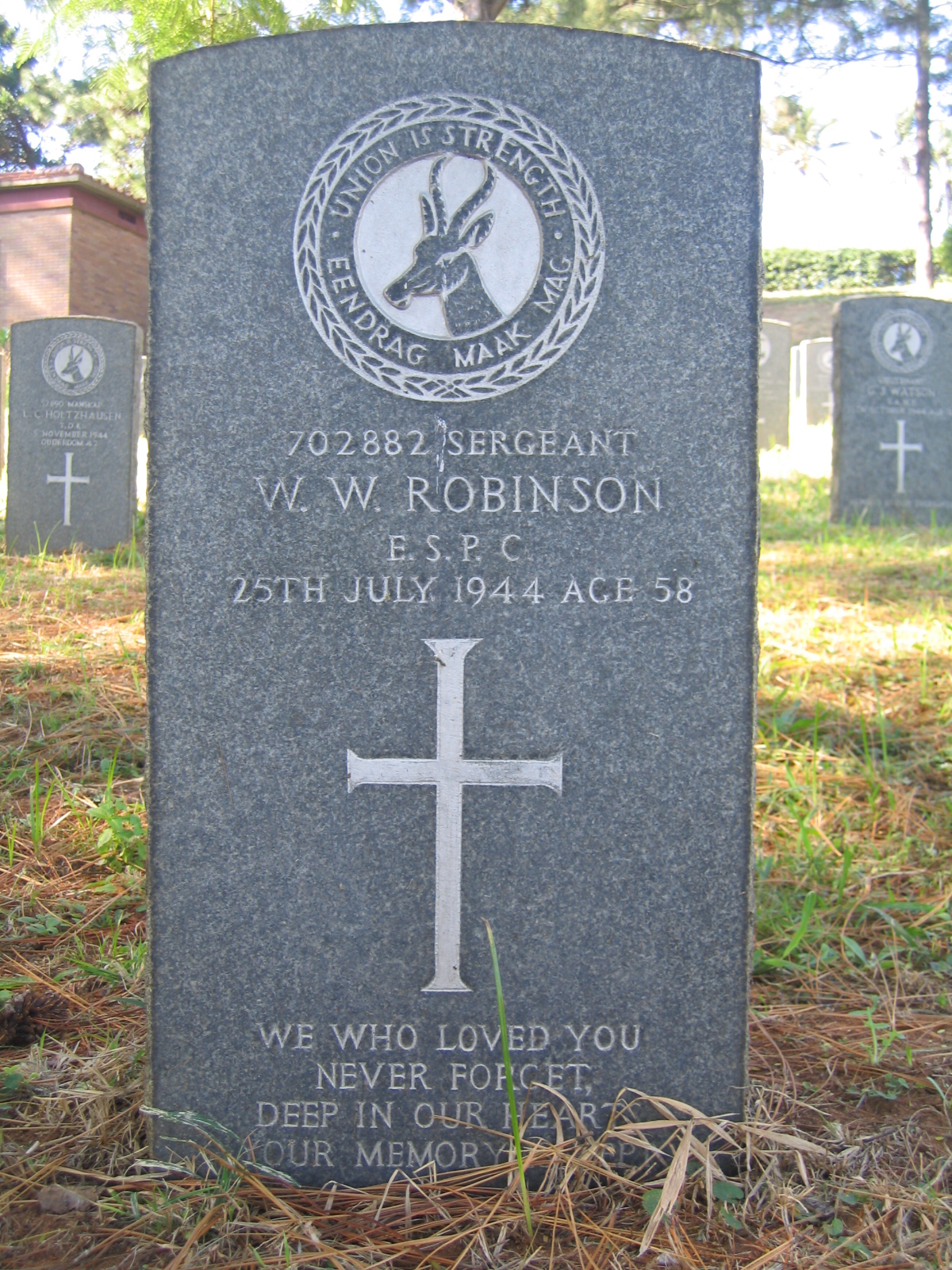Son of Walter W. Robinson and Lizetta E. Robinson; husband of Hester Elizabeth S. Robinson, of Durban. |