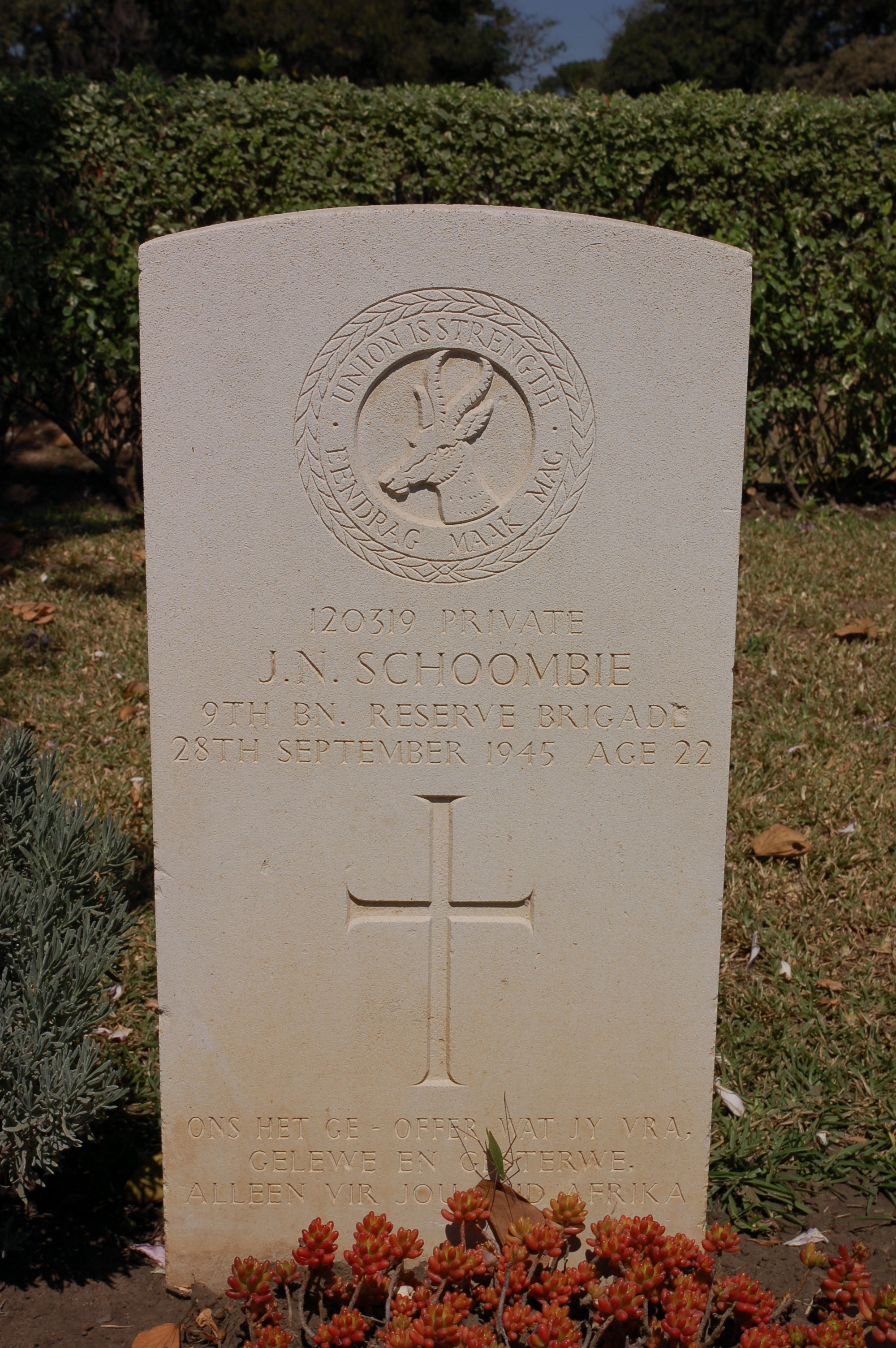 Son of Barend J. and Katrina H. Schoombie, of Rustenburg, Transvaal, South Africa. His brother also died on service, in the same aircraft accident. |