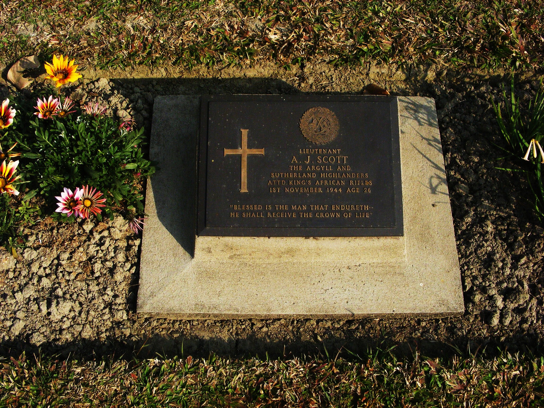 Son of Walter Ewart Gladstone Scott and Eliza Helen Moubray Brandon Scott. Rhodesian Rhodes Scholar (Double First in Botany and Chemistry). Entered Lloyd House in January 1932. He passed his Junior Certificate 1st class in 1932, and Matriculated in 1935. He played for the School 3rd XV, and was interested in Scouts and dramatics. After leaving Plumtree in December 1935, he won a Rhodes Scholarship and was on his way to England to take it up when war was declared. Scott returned and attested in October 1939; he served in the ranks with the Argyll and Sutherland Highlanders, and subsequently he was given a commission with the King's African Rifles and served through the Abyssinian campaign. On Plumtree School Roll of Honour |