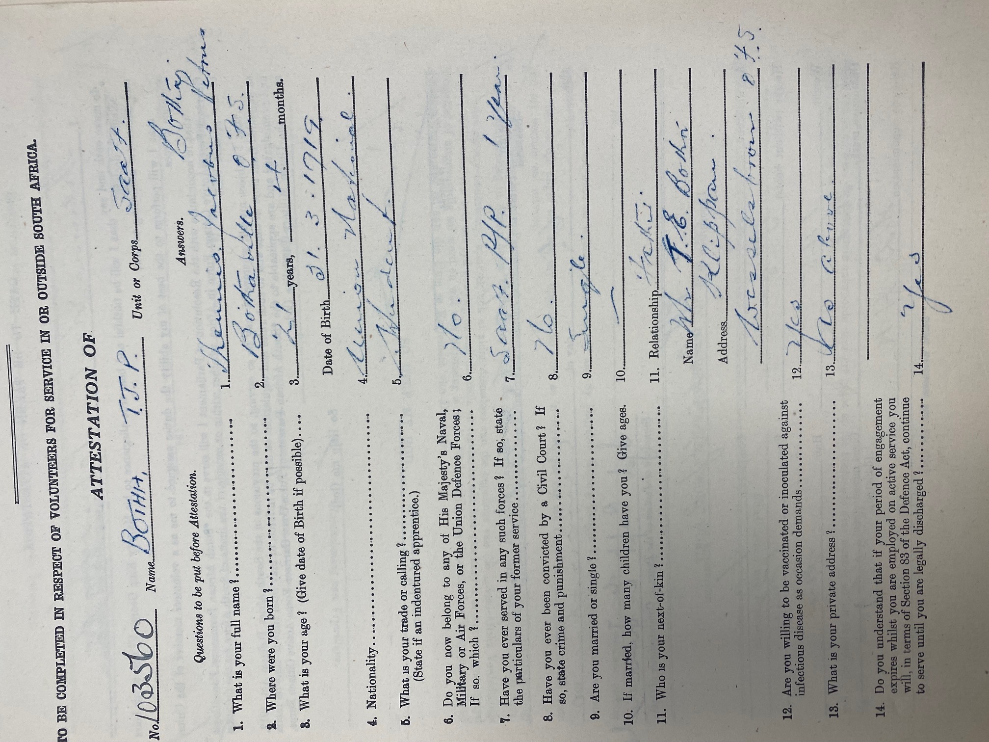 Son of Mr. T. E. Botha, of Klippan, Wesselsbron, Orange Free State |