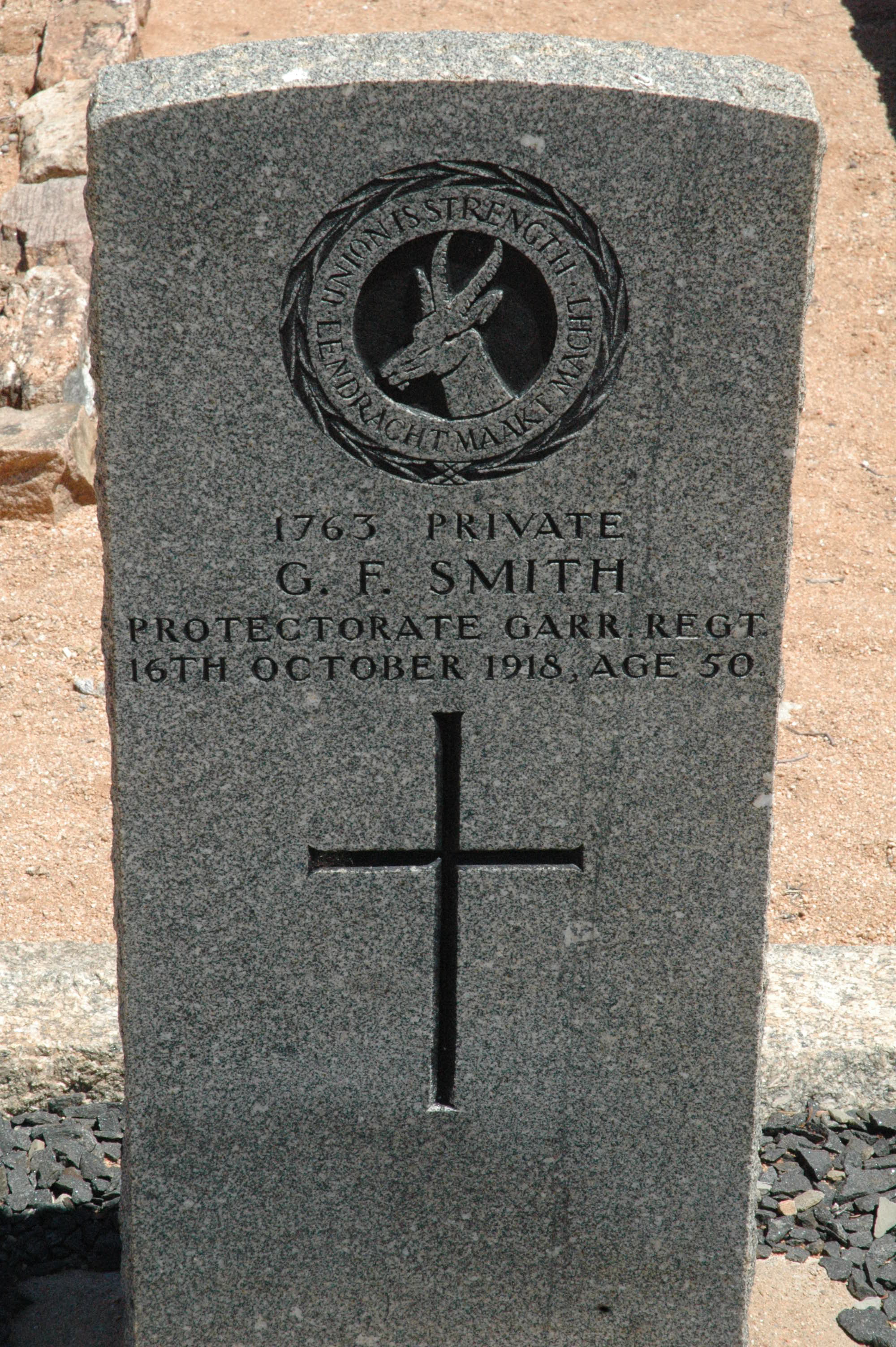 Son of the late Mr. and Mrs. G. F. Smith, of Graaff-Reinet; husband of Maria Johanna Smith, of 21, North St., Graaff-Reinet, Cape Province.